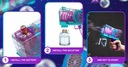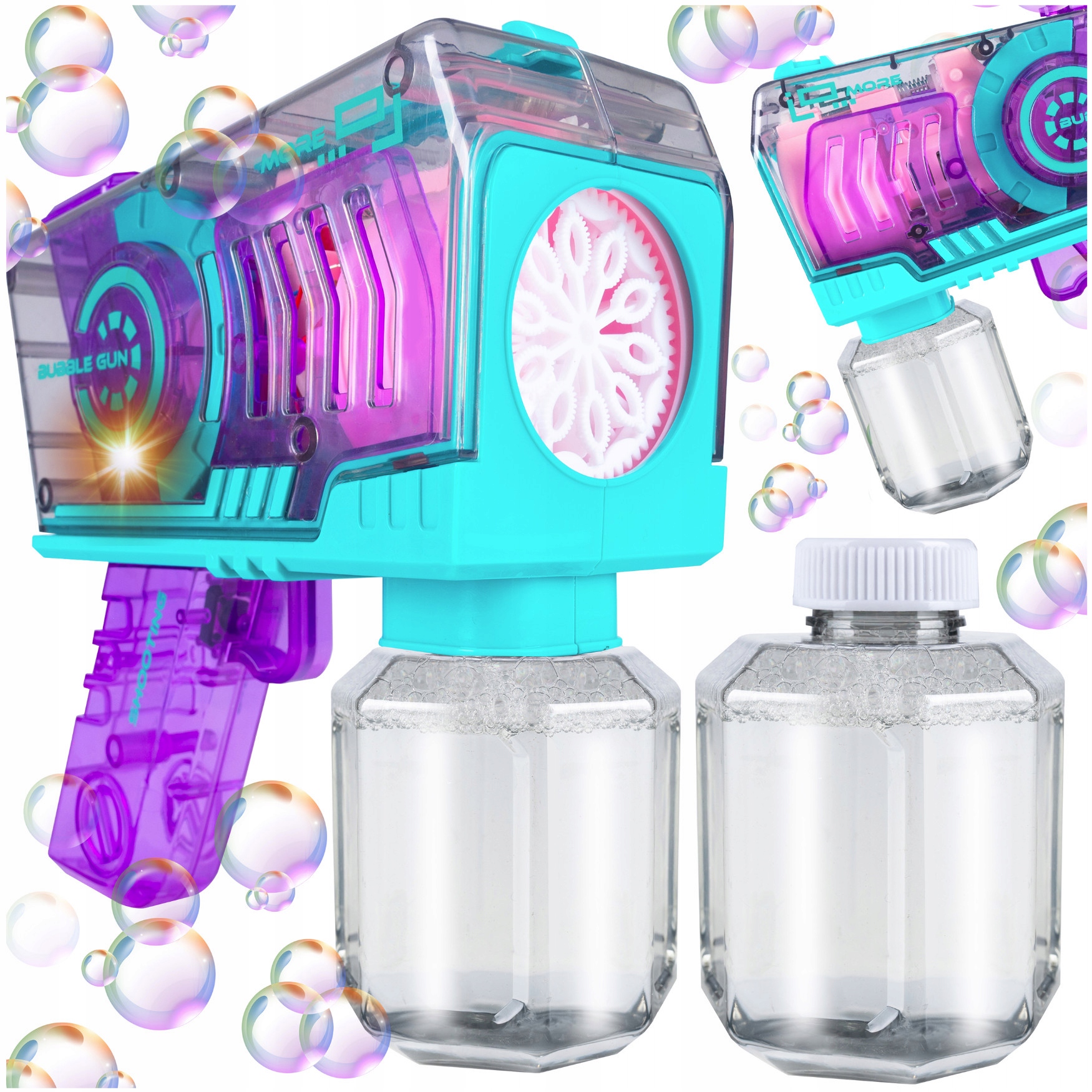 Zabawka posiada 2 wymienne zbiorniki z płynem do baniek.