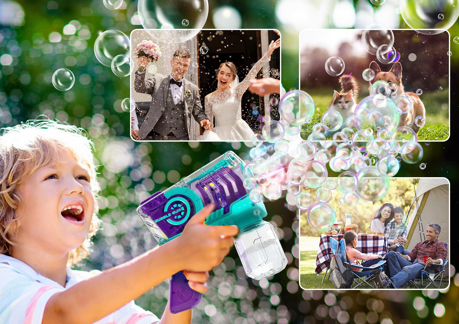 Pistolet wytwarza duże ilości baniek oraz rozwiewa je dookoła za pomocą wentylatora.Najlepsze efekty można uzyskać używając specjalnego płynu do produkcji baniek mydlanych.Specyfikacja techniczna: