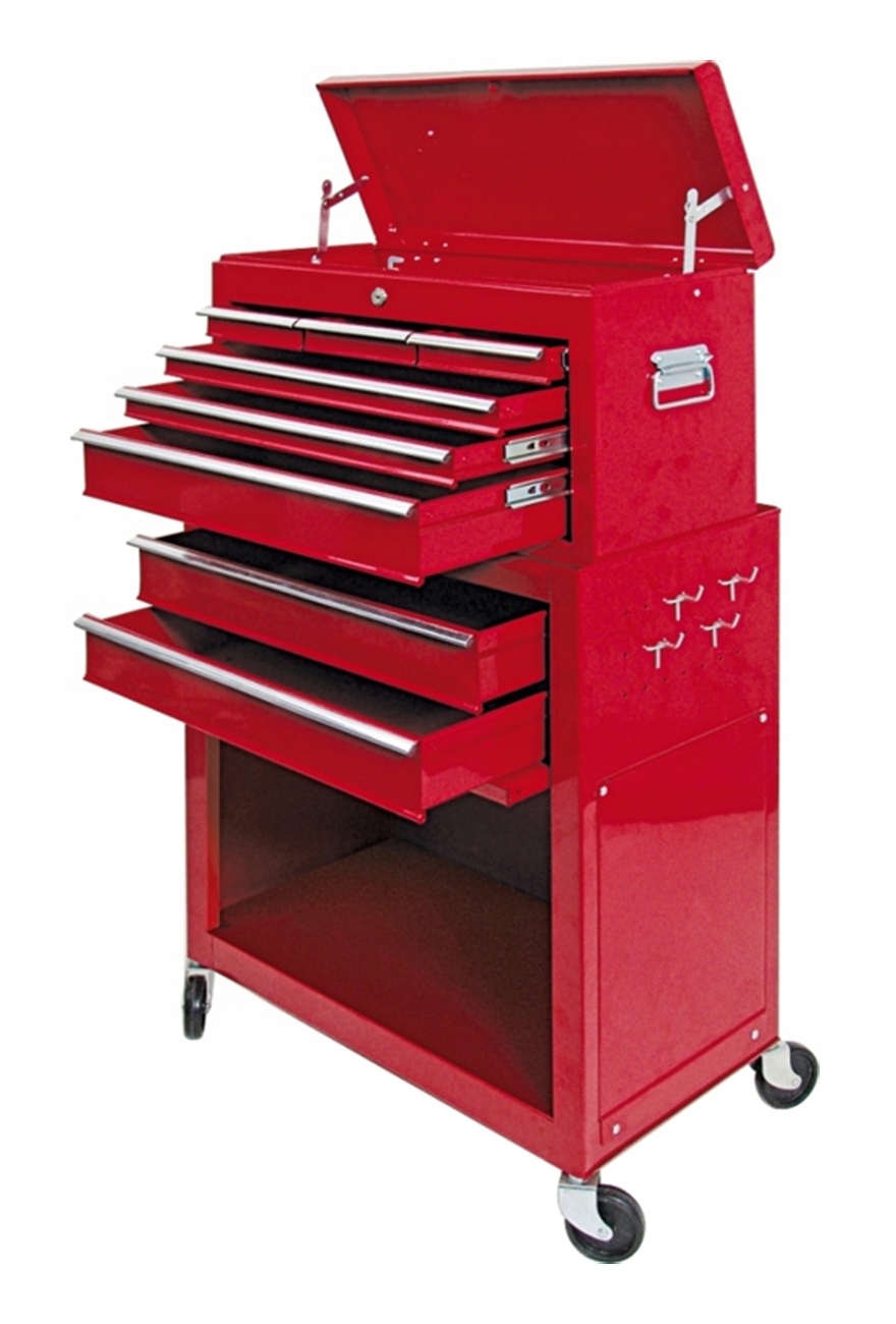 Он имеет 8 ящиков на прочных шариковых направляющих и запорный замок.