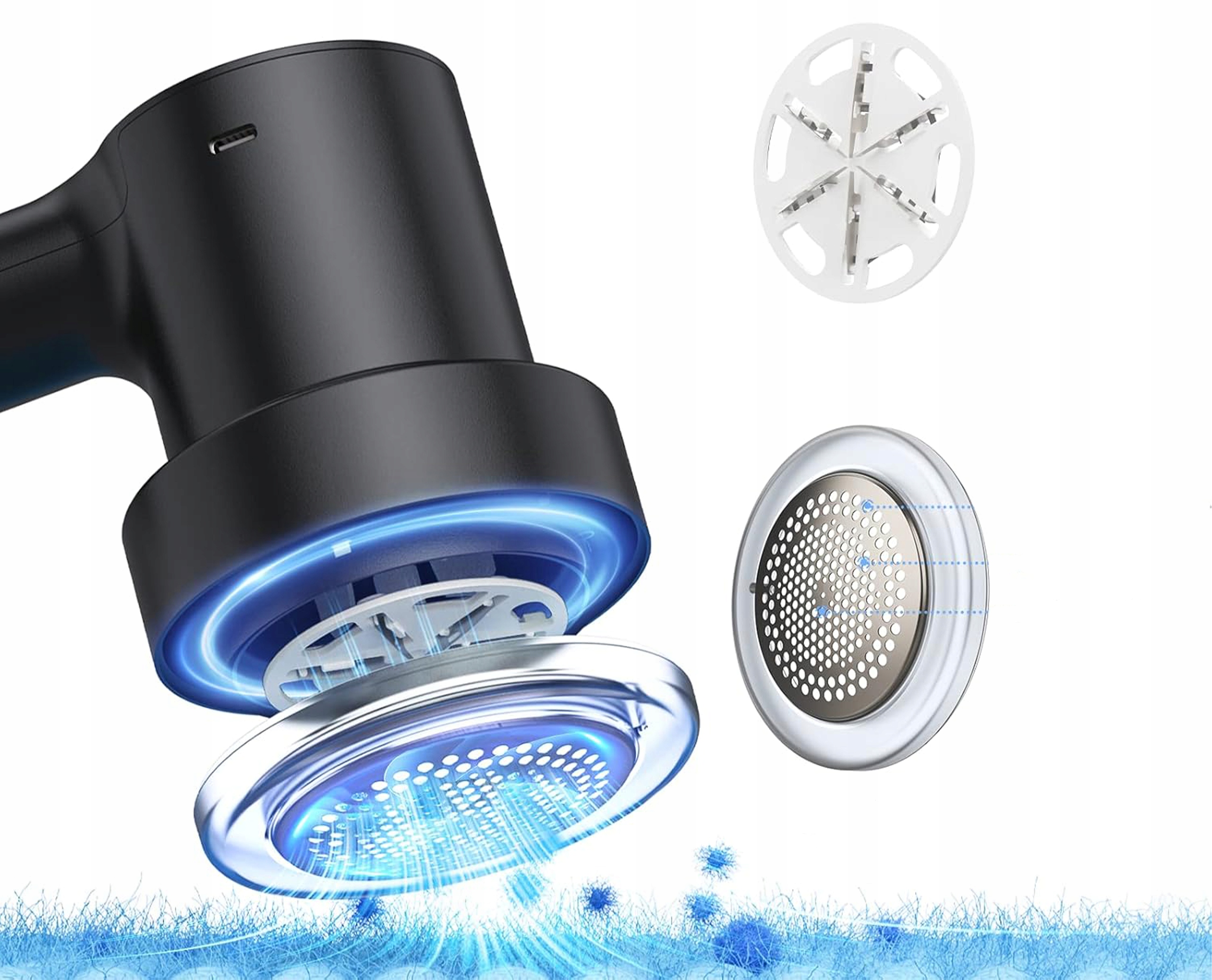 Golarka posiada zbiorniczek który zbiera resztki które usunie golarka. Rozwiązanie to pozwala na zachowanie porządku w trakcie odnawiania tkanin.