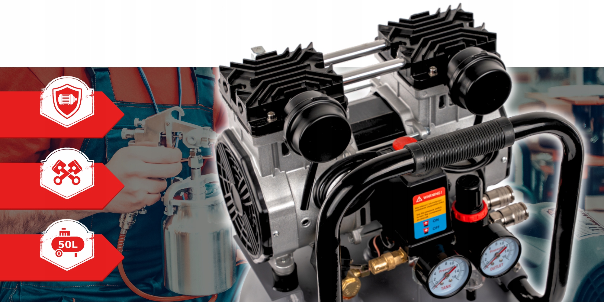 Kompresor bezolejowy TAGRED to idealne rozwiązanie zarówno dla profesjonalistów, jak i użytkowników domowych. Wyposażony w nowoczesny silnik o mocy 2000W, pionowy kompresor o pojemności 50L, który zajmuje minimalną ilość miejsca, ale dostarcza czyste, bezolejowe powietrze pod ciśnieniem do 10 BAR. Ten model zapewnia bezobsługową, cichą pracę, co sprawia, że jest niezastąpiony w warsztatach i przy pracach wymagających wysokiej precyzji.