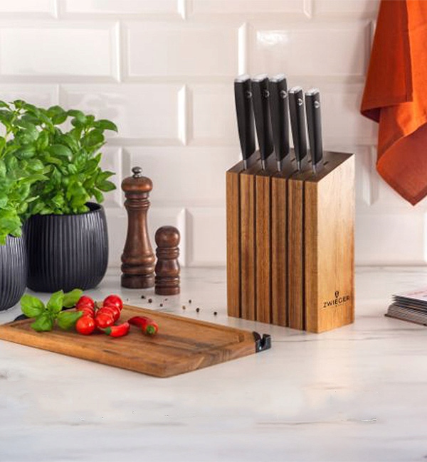 Предложение бренда Zwieger - это также небольшие аксессуары для кухни, которые в значительной степени влияют на комфорт приготовления пищи. Среди ассортиментаесть элегантные, тщательно обработанные деревянные доски для резки или подачи блюд, подставки для горячей посуды, прочные, оснащены устойчивыми ручками ножей, а также стильными столовыми приборами. Все аксессуары сочетает в себе высокое качество изготовления и внимание к деталям: изделия практичны и приятно использовать и при этом необычно элегантно. Они не только сделают приготовление пищи проще и более приятным, но и они станут уникальным украшением кухни. Zwieger - Это гарантия качества на годы - аксессуары долго сохранят отличный внешний вид и максимальную функциональность.