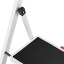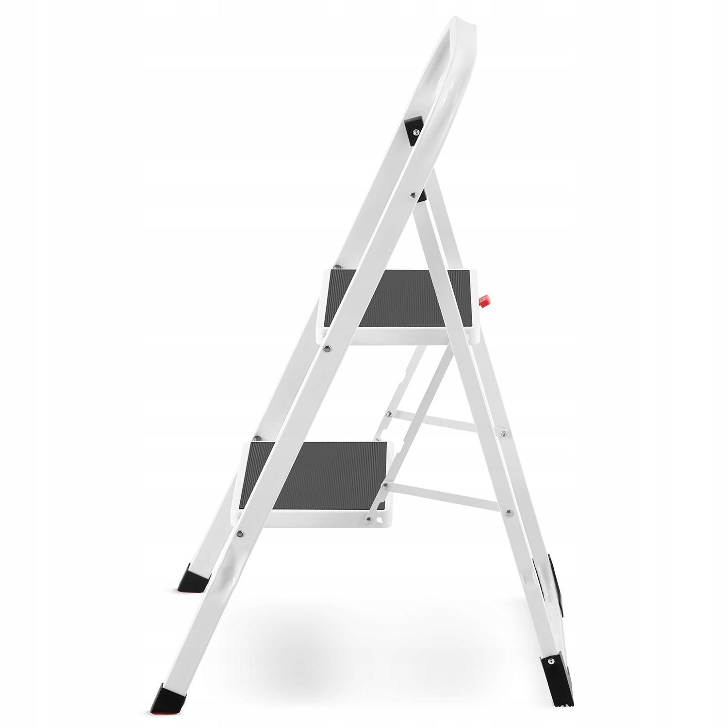 Duże stopnie o wymiarach 30 cm x 20 cm zostały pokryte antypoślizgową matą, co zapewnia maksymalne bezpieczeństwo podczas użytkowania. Stabilność konstrukcji dodatkowo wspierają stopki wyposażone w gumową warstwę antypoślizgową, która zapobiega przesuwaniu się drabiny podczas pracy. Drabina została zaprojektowana z myślą o funkcjonalności – wymiary po złożeniu wynoszą jedynie 46,5 cm x 4 cm x 89 cm, co pozwala na jej łatwe przechowywanie. To idealny produkt zarówno do prostych prac domowych, jak wymiana żarówki czy wieszanie zasłon, jak i do codziennego użytku w garażu, kuchni lub biurze.