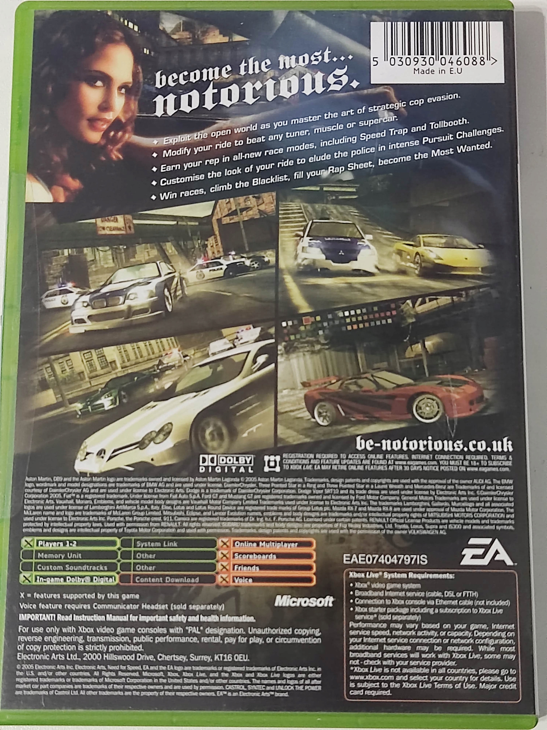 Название NEED FOR SPEED MOST WANTED XBOX