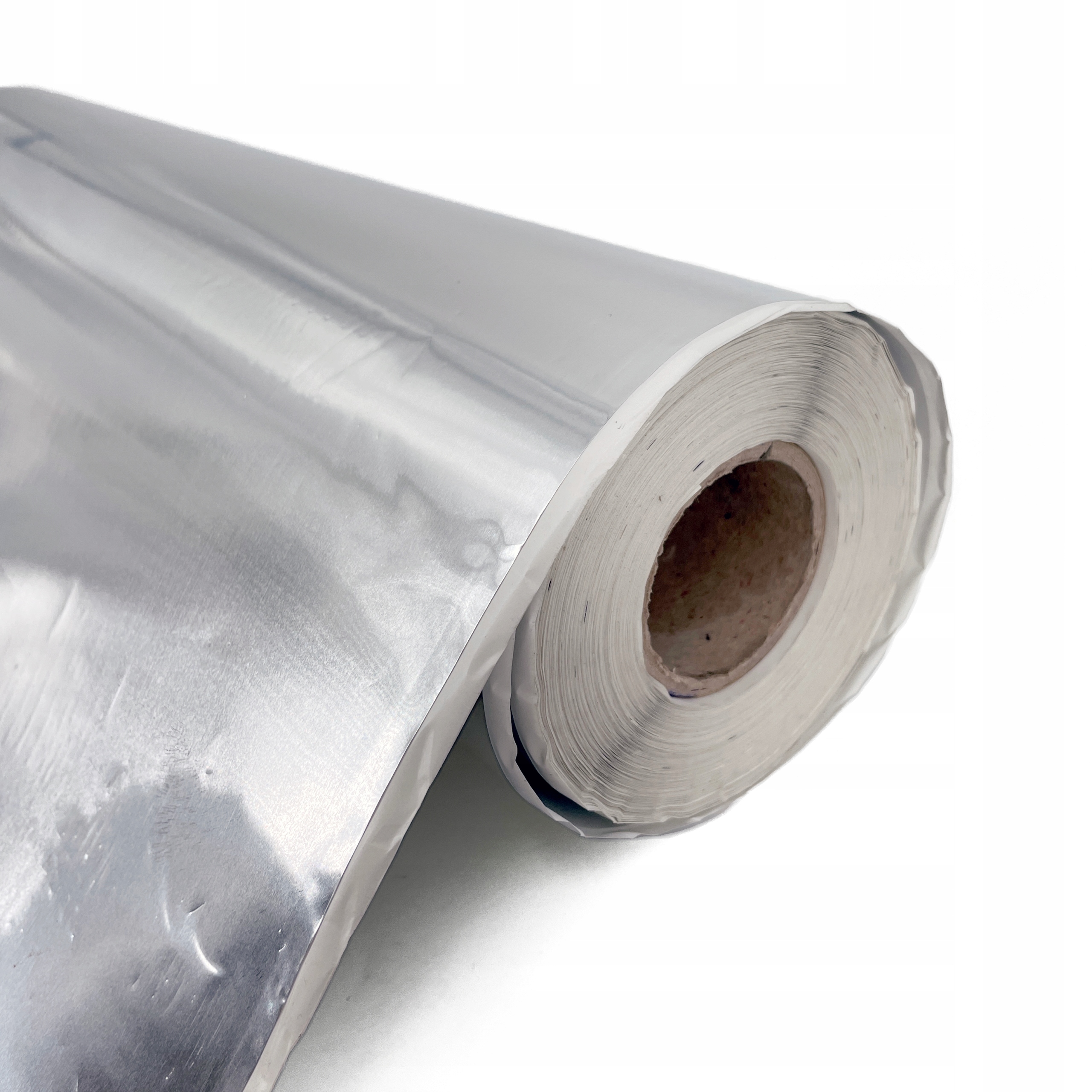 Wysokiej jakości samoprzylepna folia aluminiowa o grubości 50 mikronów, charakteryzująca się doskonałą wytrzymałością mechaniczną. Zapewnia skuteczną ochronę przed wilgocią i zanieczyszczeniami oraz stanowi barierę termiczną, utrudniającą przenikanie ciepła. Dzięki swojej elastyczności idealnie przylega i dopasowuje się do nierównych powierzchni. Warstwa przylepna oparta jest na specjalnym kleju akrylowym, który gwarantuje wyjątkową przyczepność i odporność na starzenie.