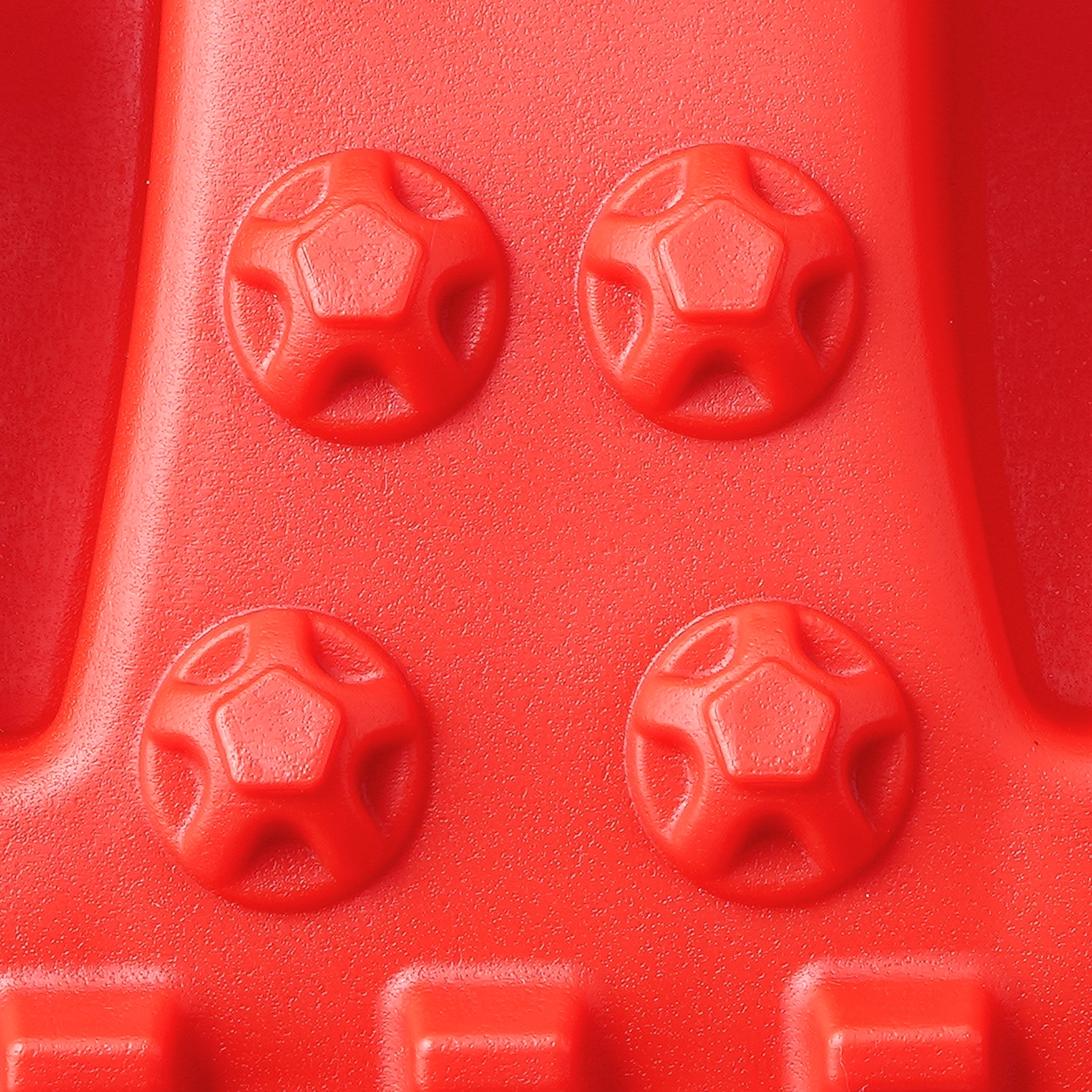 Powierzchnia w kształcie litery U mat trakcyjnych do odzyskiwania zapewnia stabilność i przyczepność, zapobiegając poślizgowi lub przemieszczeniu. Pozycje zębów w kształcie krzyża skutecznie wgryzają się w opony, zapobiegając przesuwaniu się pojazdów do tyłu, znacznie zwiększając tarcie i pomagając pojazdom uciec z trudnych sytuacji.