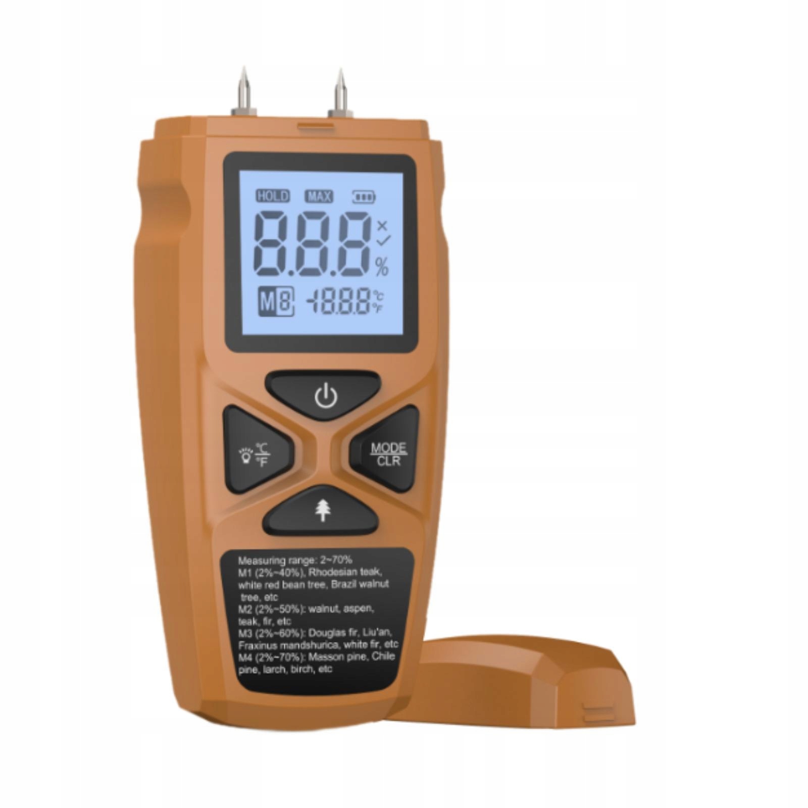[Narzędzie wykrywania]: Miernik drewna służy do pomiaru różnych rodzajów drewna, z funkcją selekcji. Wybierz zakres pomiaru w zależności od różnych typów drzew: Typ 1: 2%~40%; Typ 2: 2%~50%; Tryb 3: 2%~60%; Typ 4: 2%~70%