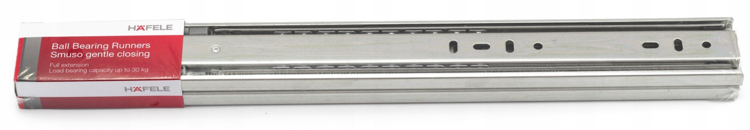 Prowadnica do szuflad niemieckiej marki HAFELE to wysokiej jakości mechanizm zapewniający płynne i ciche wysuwanie szuflad. Wykonana z wytrzymałych materiałów, charakteryzuje się dużą nośnością i precyzyjnym dopasowaniem do różnych systemów meblowych. Dzięki nowoczesnemu designowi idealnie sprawdzi się zarówno w kuchni, jak i w biurze czy salonie.