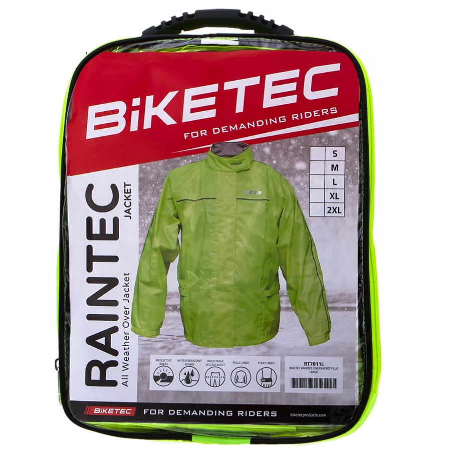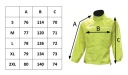 Kurtka przeciwdeszczowa wykonany jest z 100% wodoodpornego nylonu w kolorze żółtym fluo, posiada wstawki odblaskowe, ściągacze na rękawach oraz długi zamek ukryty pod wodoszczelnym materiałem.