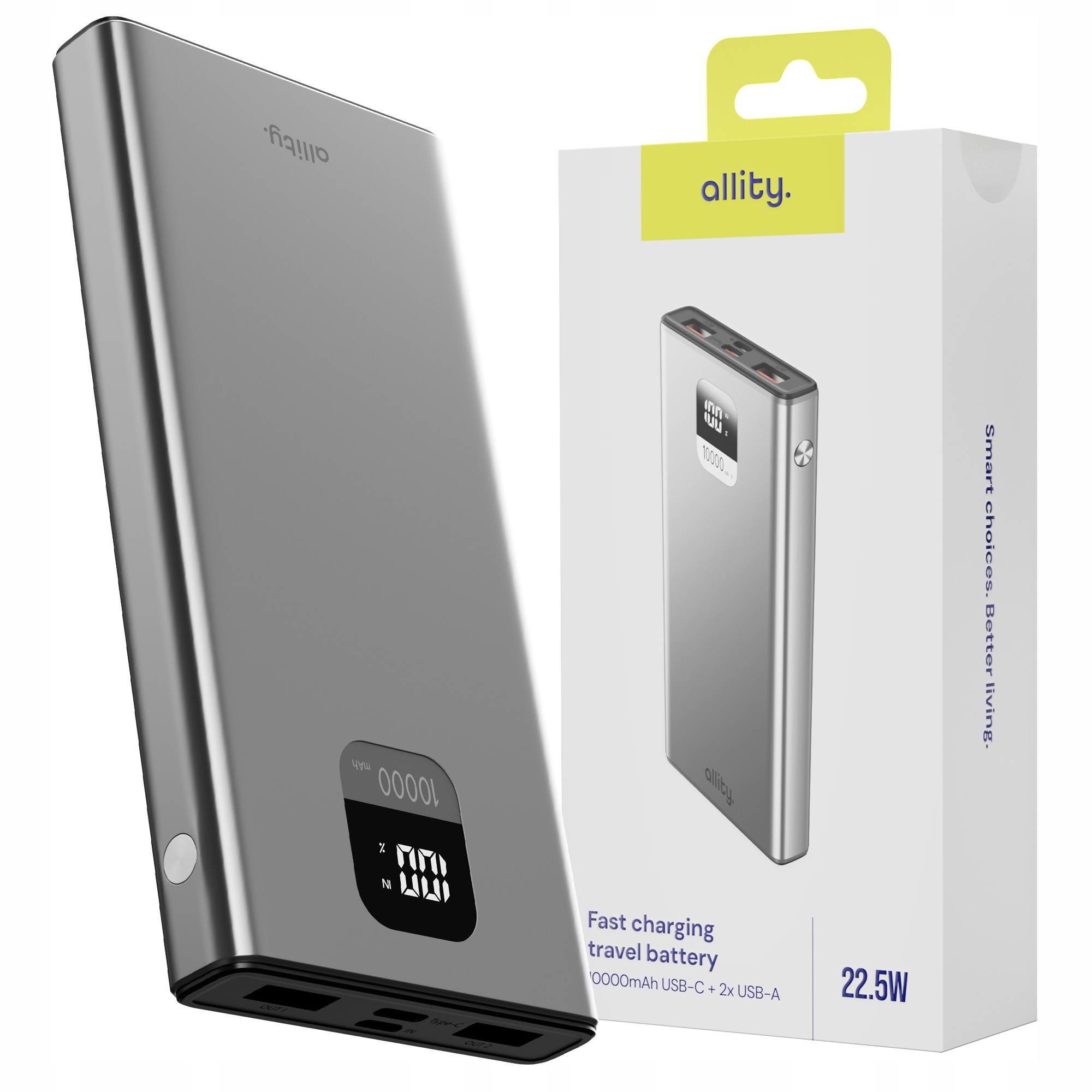 Power bank Allity pasuje do każdego stylu i sytuacji. Aluminiowa obudowa w stalowym kolorze, to solidność, elegancja i trwałość. Czy to w biurze, na wakacjach, czy podczas długiej podróży - zawsze możesz liczyć na niezawodność powerbanku Allity. Z Fast Charging Travel Battery zawsze masz zapas energii w najlepszej oprawie.