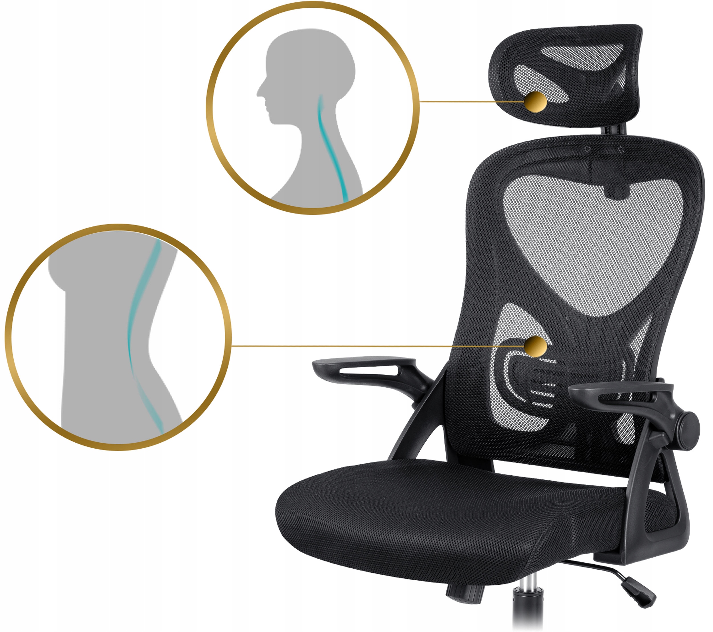 Wyprofilowana część lędźwiowa pomaga utrzymać ergonomiczną bezpieczną postawę. Dopasowuje się do kształtu Twojej sylwetki, gwarantując wygodę podczas siedzenia.