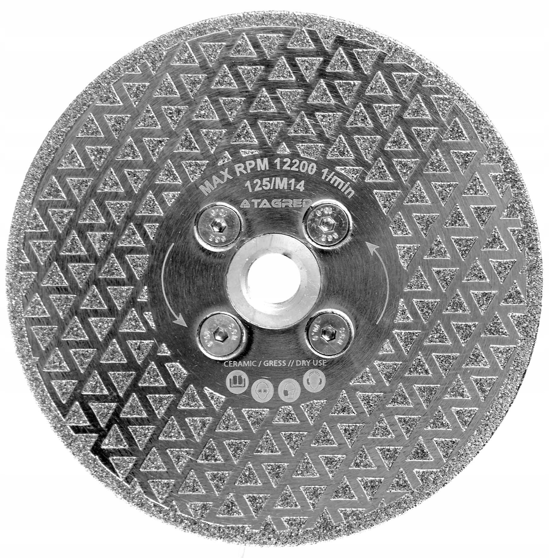Wszechstronne narzędzie do cięcia i obróbki zgrubnej kamienia naturalnego, wszystkich rodzajów płytek ceramicznych i materiałów syntetycznych. Zastosowanie powierzchni diamentowej nanoszonej metodą powlekania elektrolitycznego w tarczy TAGRED zmniejsza ryzyko powstawania wibracji podczas cięcia przy użyciu szlifierki. Dzięki temu można stosować tę tarczę do cięcia materiałów obarczonych wysokim ryzykiem wykruszenia lub pęknięcia. Często w pracy wykonawcy szukają narzędzi "uniwersalnych" w sensie "wszechstronnych". Dlatego właśnie powstała jedna tarcza diamentowa do cięcia, fazowania, szlifowania płytek kamiennych i ceramicznych.