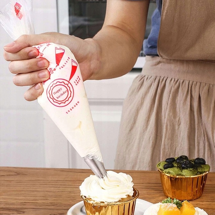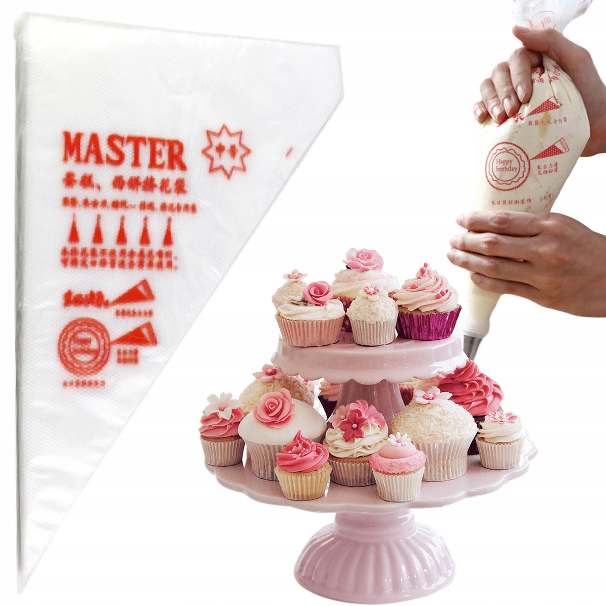 Zestaw jednorazowych rękawów cukierniczych idealnie sprawdzi się do ozdabiania tortów, ciast i ciasteczek.