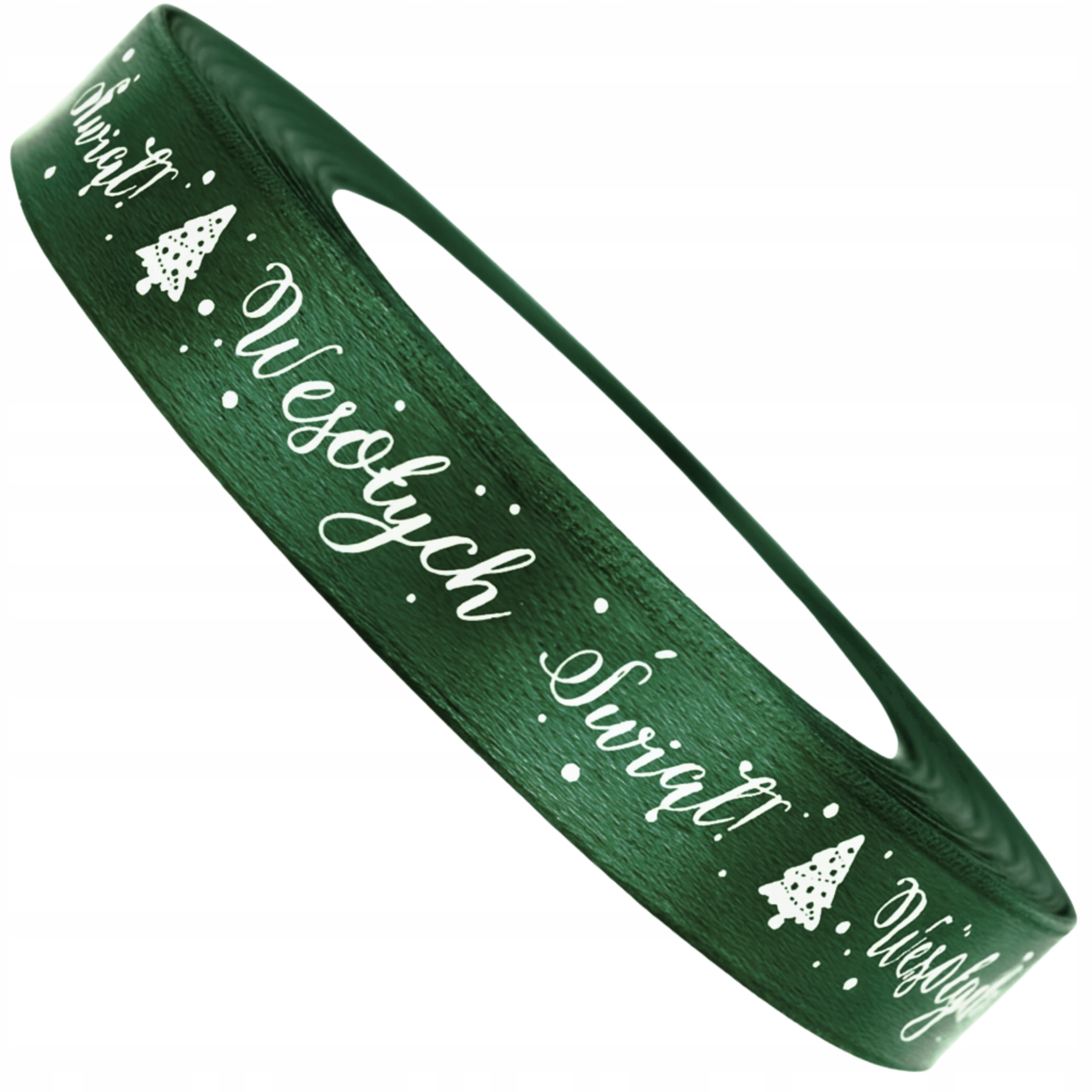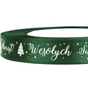 Odkryj wyjątkową wstążkę z nadrukiem "Wesołych Świąt" – doskonałą ozdobę do pakowania prezentów świątecznych. Satynowa tasiemka w kolorze zielonym o szerokości 1,2 cm to nie tylko elegancki dodatek, ale również wyraz świątecznej radości.