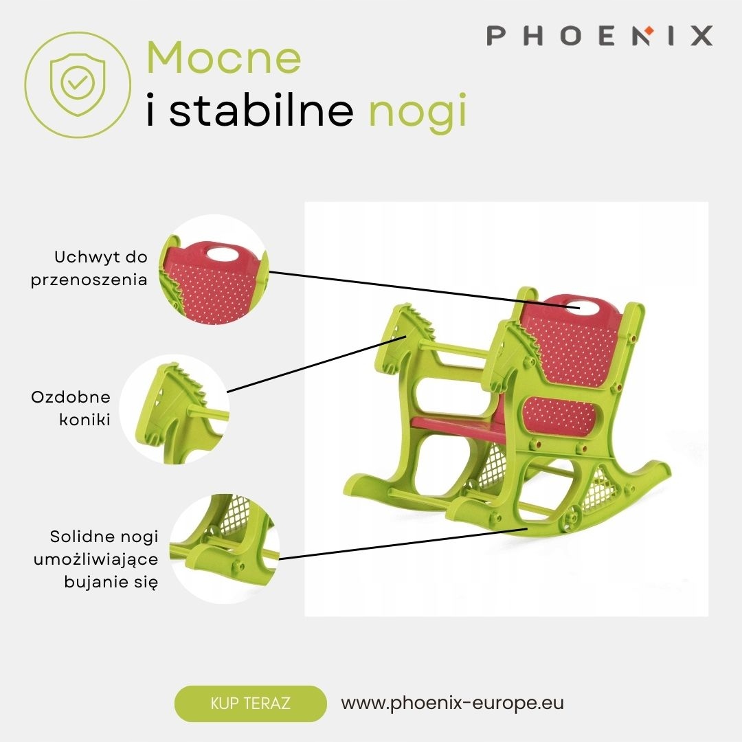Dwa uchwyty w kształcie koników i delikatnie zaokrąglone płozy pozwalają na bezpieczne bujanie się, zapewniając dziecku długie godziny radosnej zabawy. Idealny do rozwijania równowagi i koordynacji ruchowej u najmłodszych.