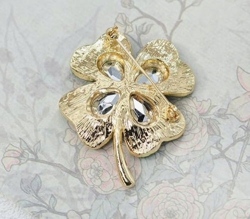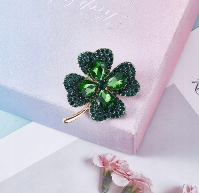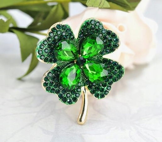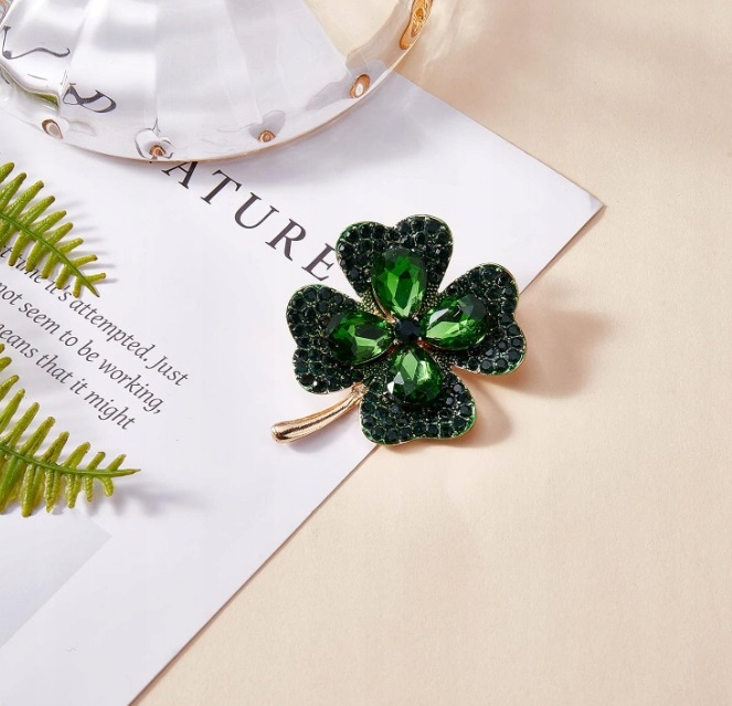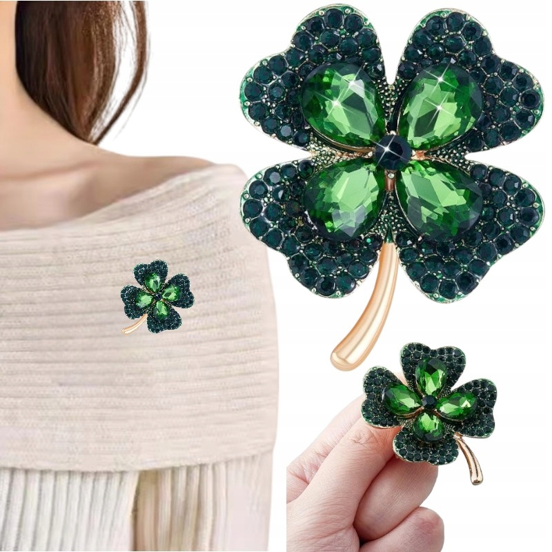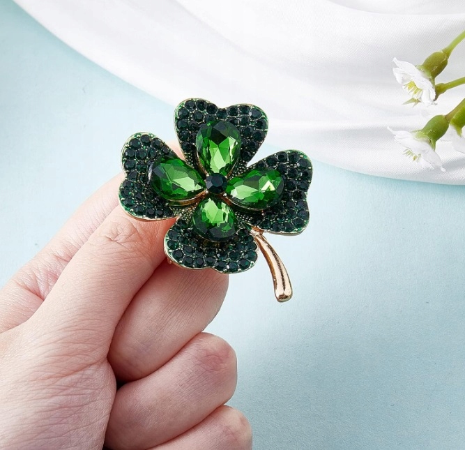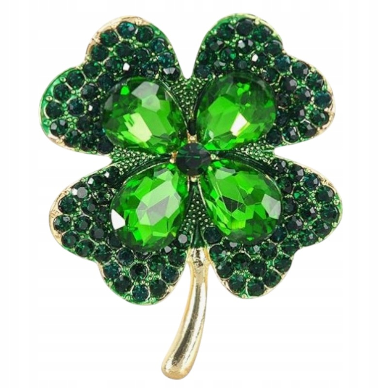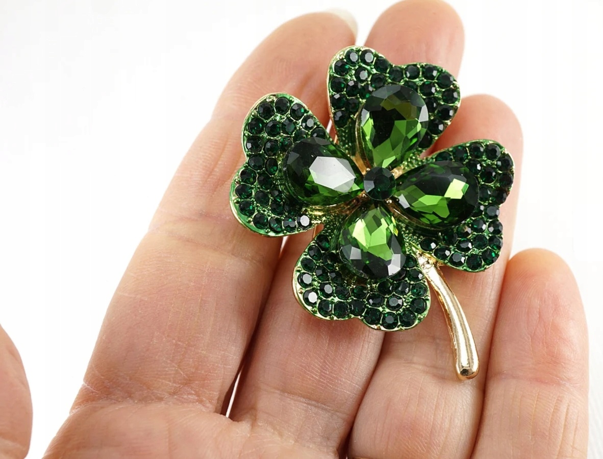 ✔️ Wyjątkowa broszka w kształcie koniczynki wysadzana dżetami w odcieniach koloru zielonego