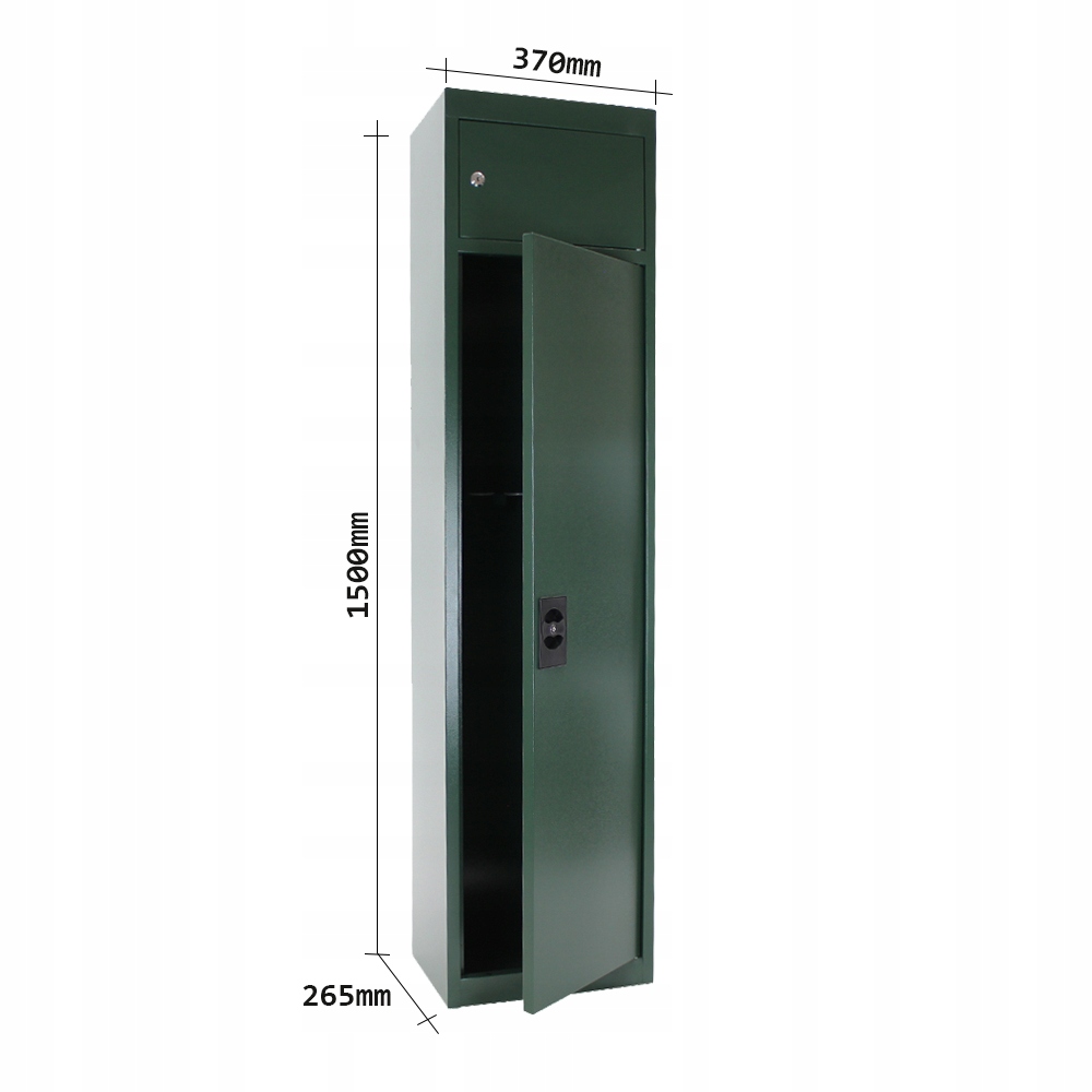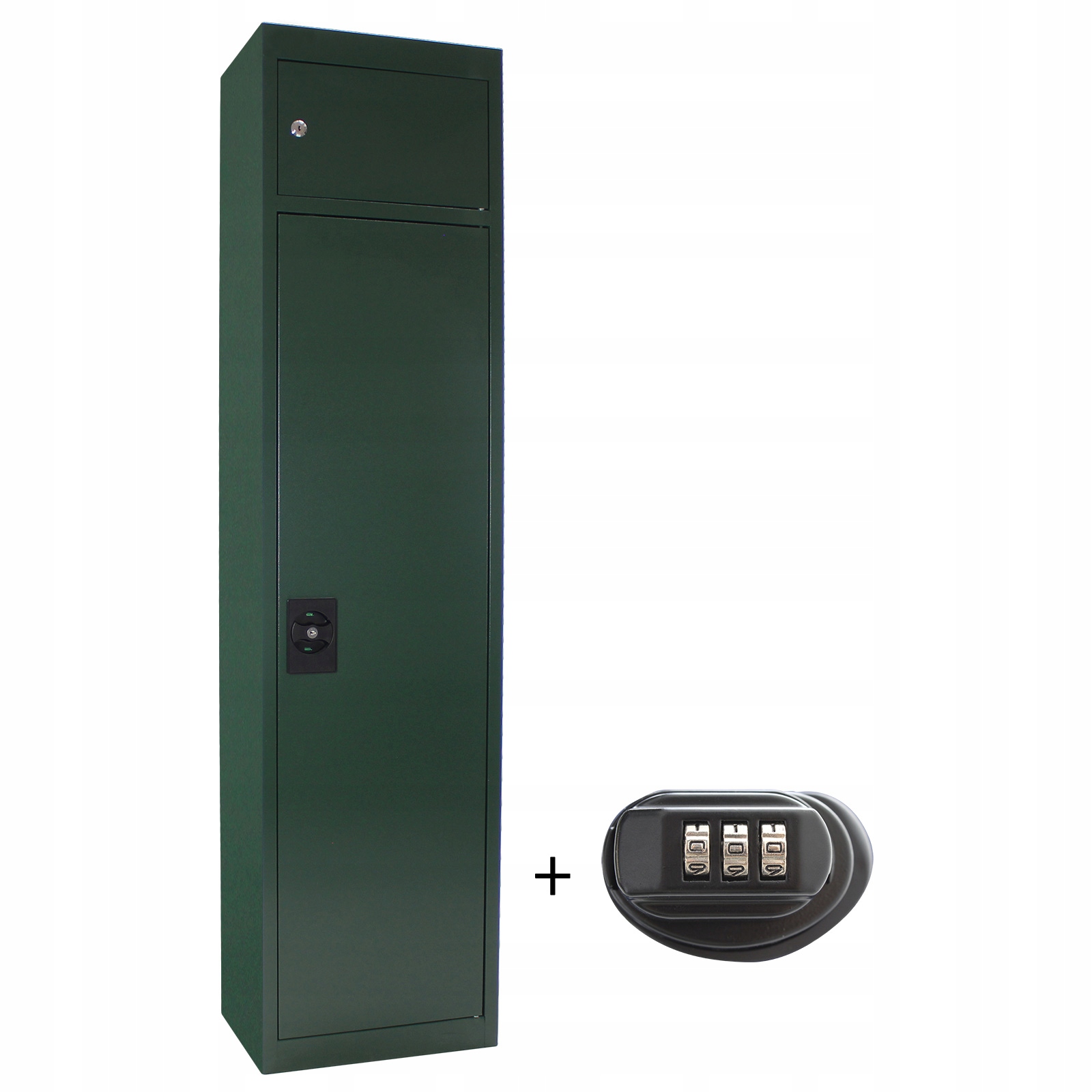 Do tego produktu otrzymasz darmowy zamek broni Gun Control, który idealnie nadaje się do bezpiecznego przechowywania broni krótkiej lub długiej. Stalowe części zapewnią niezbędną trwałość, a mechaniczny zamek z kombinacją numeryczną sprawi, że broń nie będzie używana przez osoby niedozwolone. UWAGA - Zawsze zabezpieczaj tylko nienaładowaną broń! Główne zalety Gun 5: Zamek cylindryczny z 2 kluczami Miejsce na 5 długich broni Wysokiej jakości wykończenie Szafa jednowarstwowa Skrzynka wewnętrzna (250 mm) z zamkiem cylindrycznym i 2 kluczami Zielona szafa na broń wraz z oddzielną skrzynką wewnętrzną zapewnia wystarczająco dużo miejsca na długą broń. Łącznie do 5 długich broni można przechowywać wewnątrz szafy, a w górnej skrzynce można przechowywać np. amunicja. Wysokiej jakości stal sprawi, że Twoja broń będzie bezpieczna przed niepożądanym traktowaniem, a jednocześnie ładnie przechowywana. Szafka jest wyposażona w otwory z tyłu i na dole, a wraz z dostarczonym materiałem do mocowania można ją łatwo zamocować na miejscu. Ta szafa nie jest certyfikowana. W przypadku tej skrzynki na broń przewidziano, że przy przechowywaniu broni długiej do 2 sztuk lub do 500 sztuk nabojów obowiązuje deklaracja zgodności.