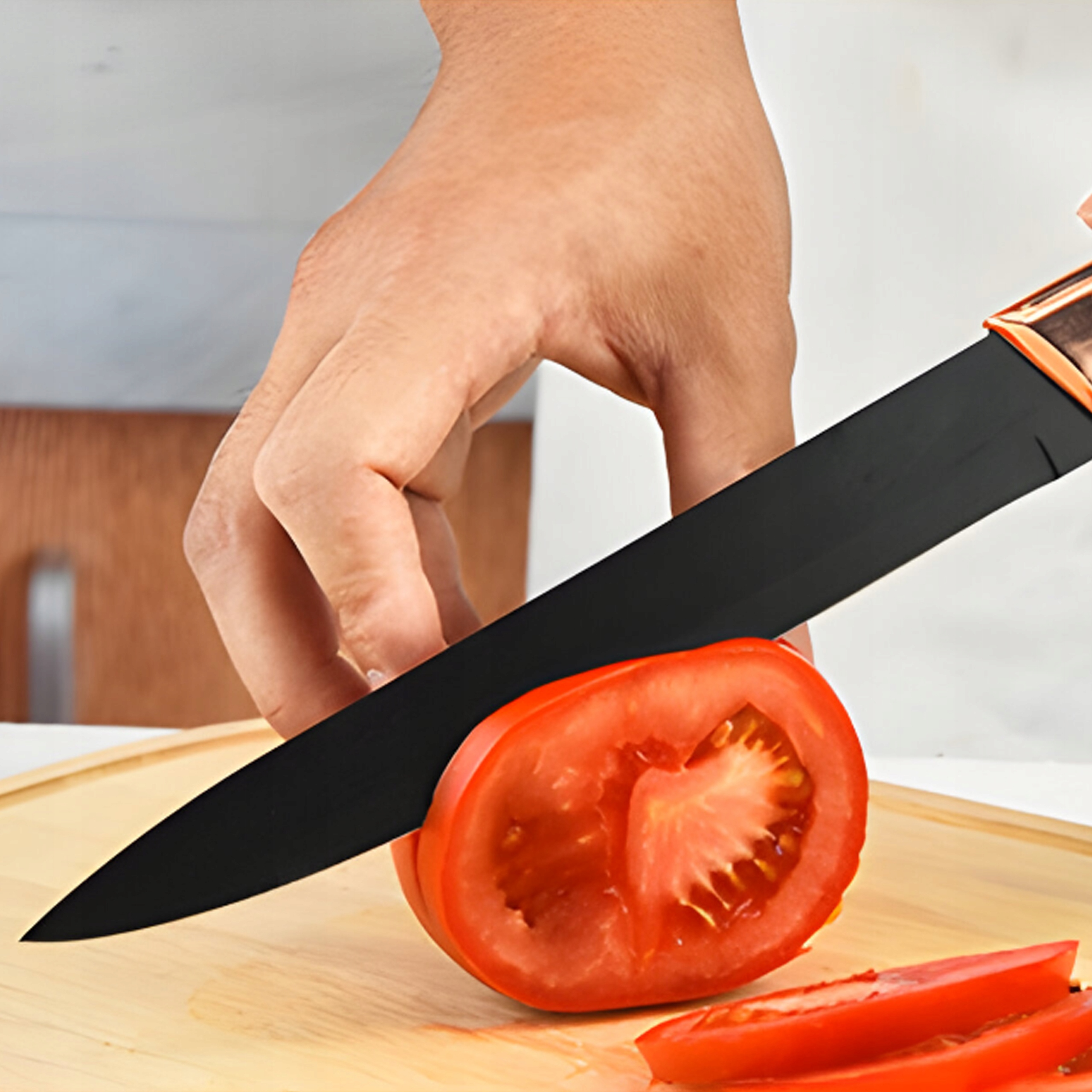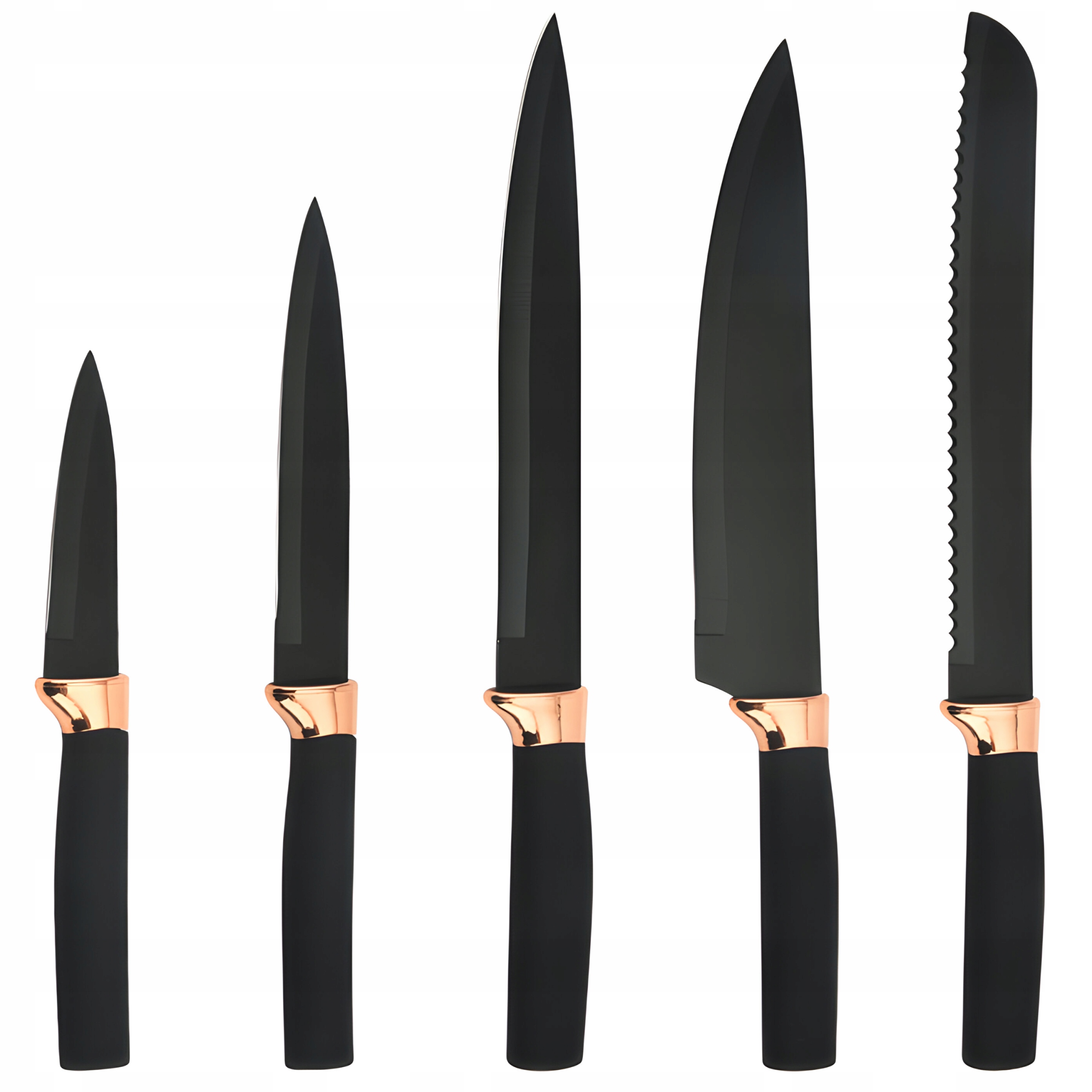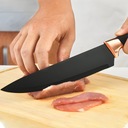 Noże wyróżniają się nie tylko swoją funkcjonalnością, ale również eleganckim designem, który doskonale komponuje się z różnymi stylami dekoracji kuchennych. Ich estetyczny wygląd sprawia, że stają się nie tylko praktycznymi narzędziami kuchennymi, ale także ozdobą Twojej kuchennej przestrzeni. Są idealnym wyborem dla tych, którzy cenią zarówno funkcjonalność, jak i estetykę. Czarny kolor i wykończenia w odcieniach różowego złota nadają nożom wyjątkowo elegancki charakter.