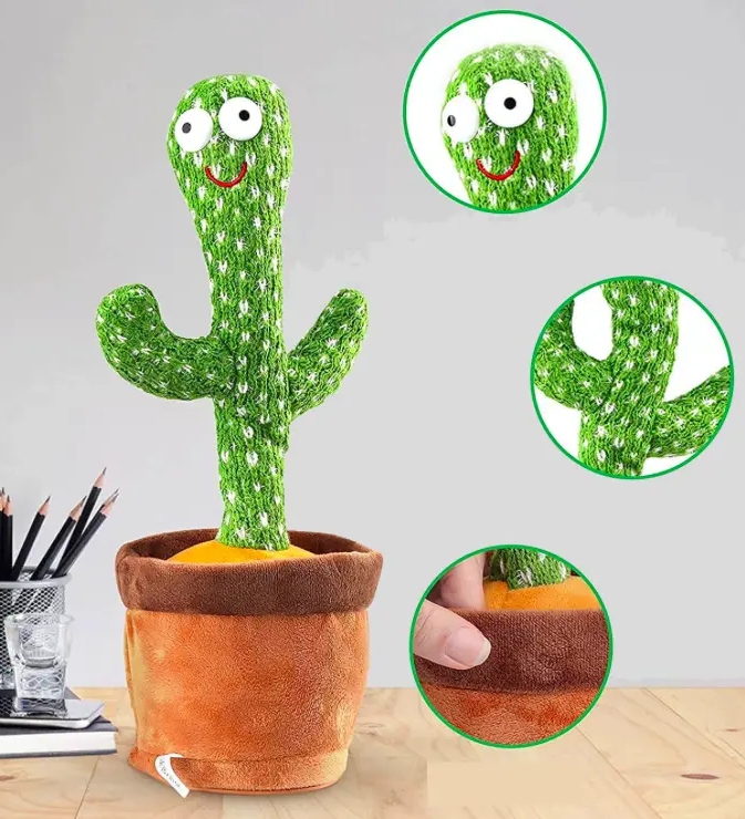 Zabawki pluszowe są całkowicie bezpieczne dla dzieci. Zabawka może tańczyć, śpiewać, poruszać się i obracać. Pluszowy kaktus na akumulator kołysze się i śpiewa wesołe piosenki, tworząc żywą i ciepłą atmosferę w twoim domu. Kaktus który potrafi śpiewać, tańczyć a także "papugować" usłyszane słowa to właśnie ta sympatyczna maskotka. Zabawka posiada dużo różnych utworów, tańczy w bardzo śmieszny sposób a podczas tańca jego tułów świeci na różne dyskotekowe kolory.