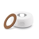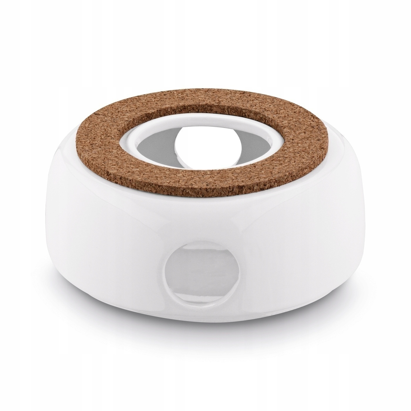 Element 2: podgrzewacz ceramiczny z korkową nakładką, - 15 x 15 x 6,5 cm, - średnica górnego otworu: 6 cm, - średnica nakładki: 12 cm