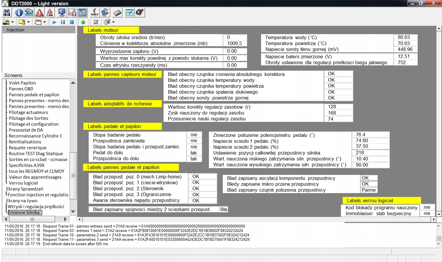 Interfejs diagnostyczny umożliwia dokonanie pełnej, profesjonalnej diagnostyki w zakresie:
