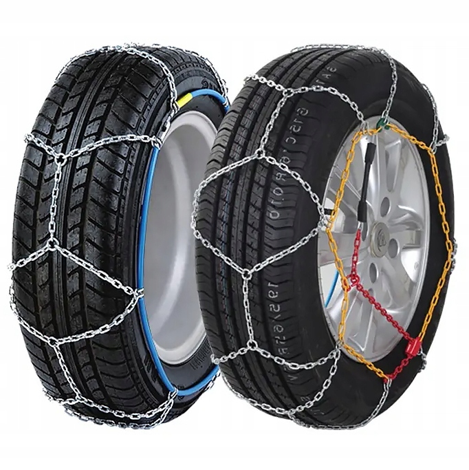Łańcuchy wykonane w rombowym (diamentowym) wzorze zapewniają optymalną przyczepność na zaśnieżonych lub oblodzonych nawierzchniach.