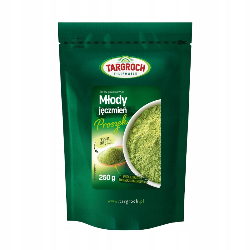Jęczmień zielony w proszku marki Targroch to produkt najwyższej jakości, dostępny w szczelnym, nieprzezroczystym opakowaniu, które chroni proszek przed szkodliwym wpływem światła i wilgoci. To w 100% naturalny produkt, bez dodatkowych substancji konserwujących czy przeciwzbrylających. Jęczmień w proszku to wyjątkowy suplement diety, który zdobył popularność wśród dietetyków, sportowców i miłośników zdrowego odżywiania.