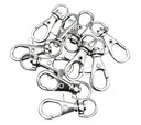 Karabińczyk metalowy typu rybka 10 mm o szerokości 9 mm, wysokości 39 mm i wadze 3,1 g.
