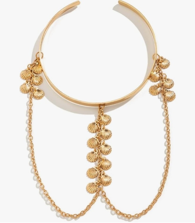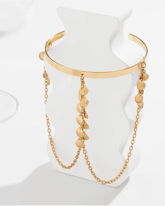 Modna bransoletka Mankiet z łańcuszkami i muszelkami na ramię