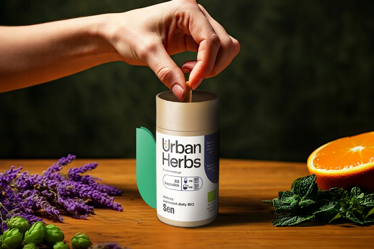Urban Herbs BIO Sen jest suplementem diety zawierającym kompozycję ekologicznych ekstraktów roślinnych z liści melisy, szyszek chmielu, kwiatu lawendy i ekstraktu ze skórki słodkiej pomarańczy, zamkniętych w kapsułkach pochodzenia roślinnego.