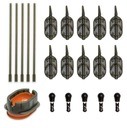 Gotowy zestaw podajników do Method Feedera. Zestaw zawiera 10 szt. podajników wraz z łącznikami i foremką z wypychaczem. 5 szt. lotek do dystansu GRATIS !!!