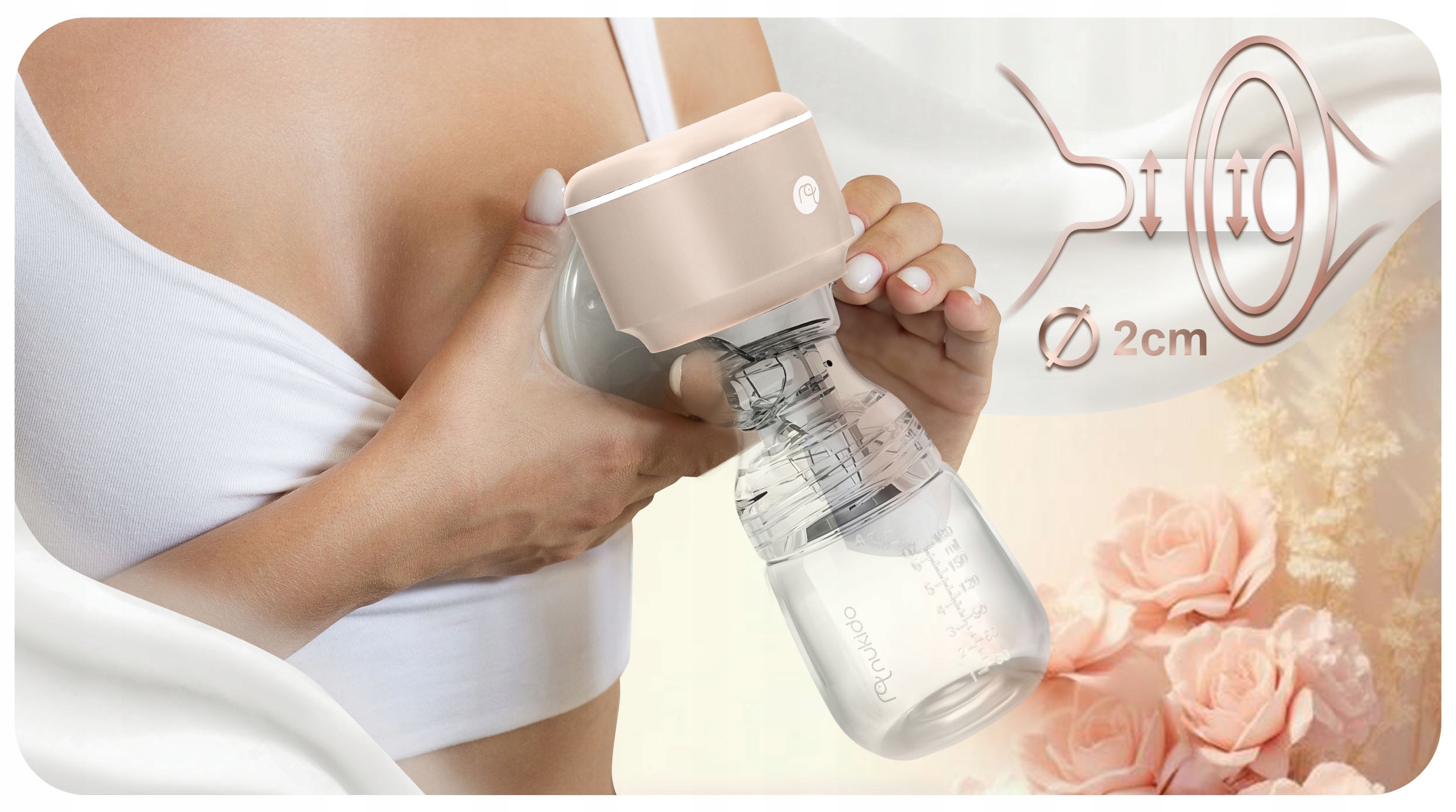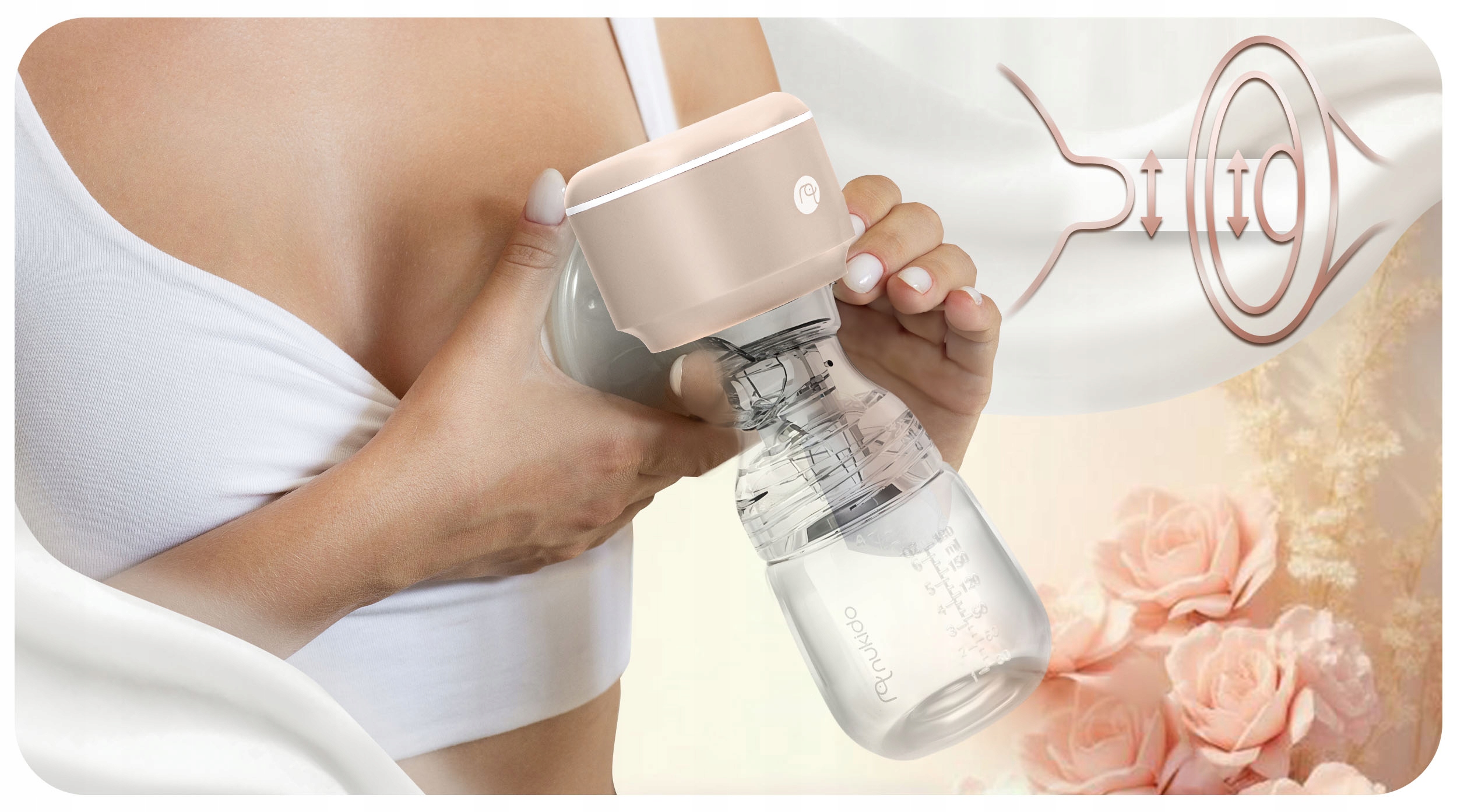 Nie musisz się martwić dopasowaniem laktatora — anatomicznie wyprofilowana, uniwersalna nakładka masująca pozwala wygodnie go użyć, gdy tylko jest to potrzebne. Nakładka została wykonana z silikonu, który jest miękki i delikatny dla skóry. Stymuluje ona wypływ pokarmu, wykonując przy tym delikatny masaż piersi, który przynosi kobiecie ulgę.