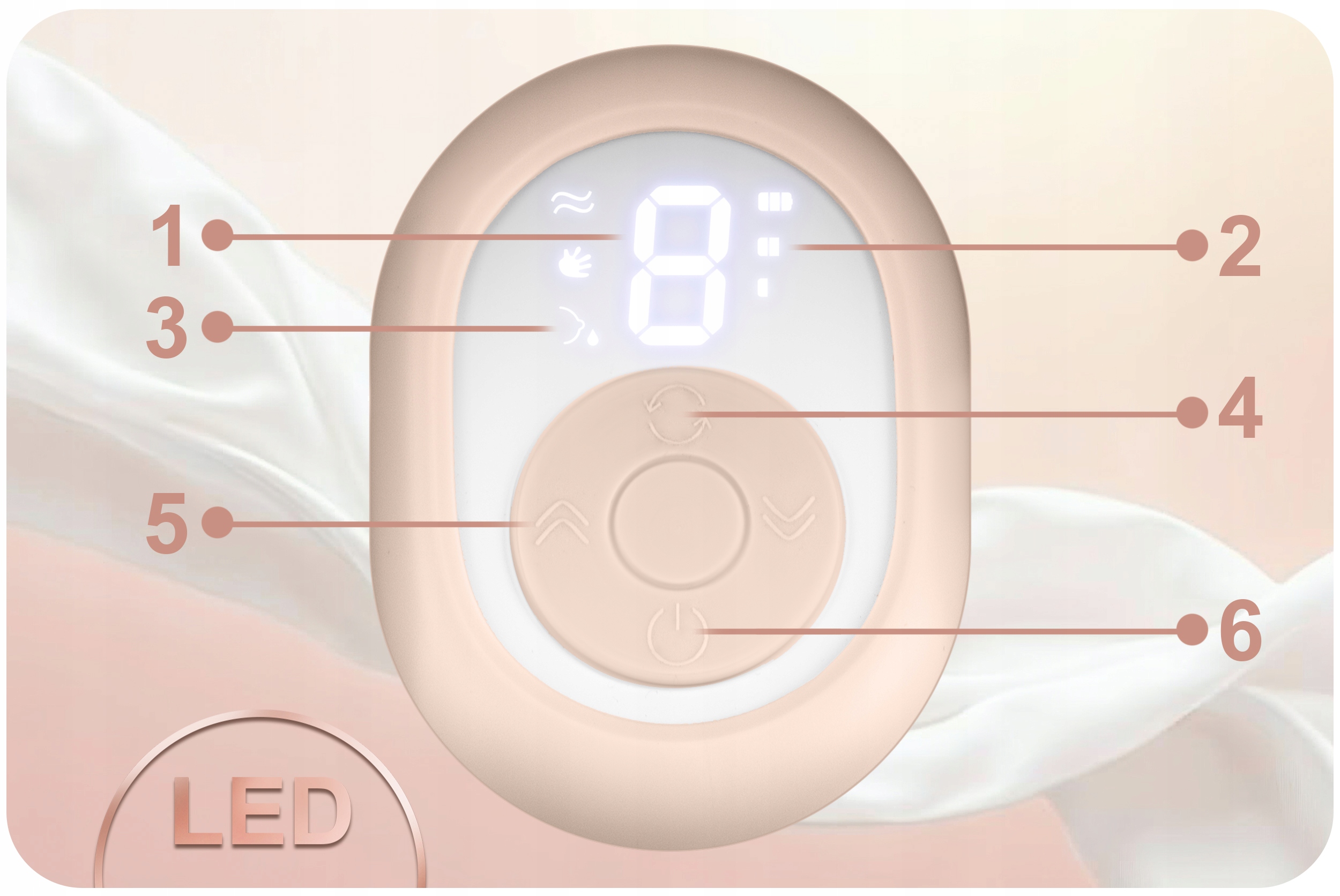 Laktator Nukido został wyposażony w czytelny wyświetlacz LED, który pozwala na użycie urządzenia w nocy bez zapalania światła. Dzięki niemu z łatwością można ustawić tryb jego pracy oraz właściwy poziom stymulacji. Można też mieć pod stałą kontrolą poziom naładowania baterii.