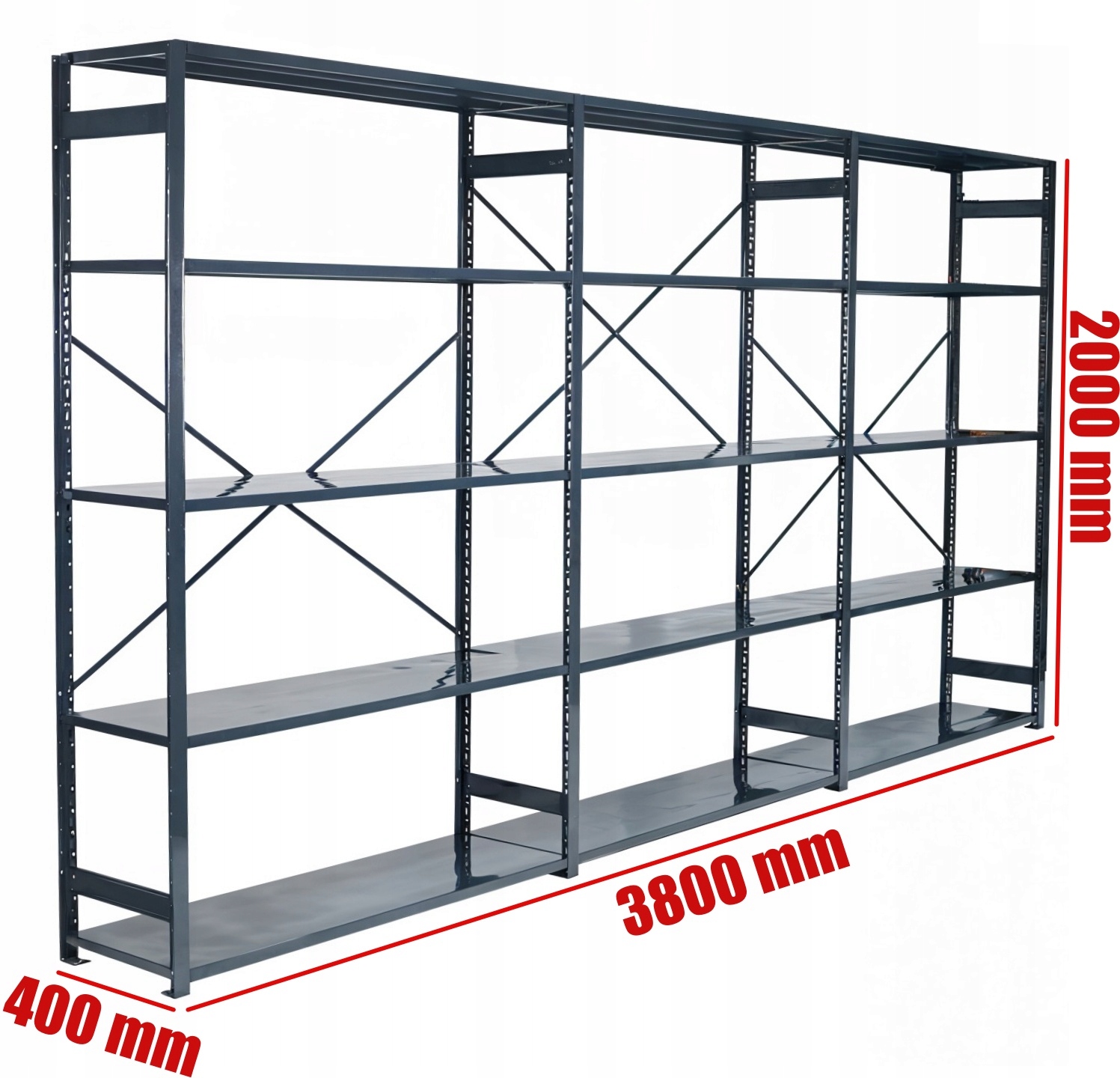 REGAŁ METALOWY MAGAZYNOWY DODAS GR 200x380x40 MODUŁ 5 PÓŁEK MOCNY SOLIDNY