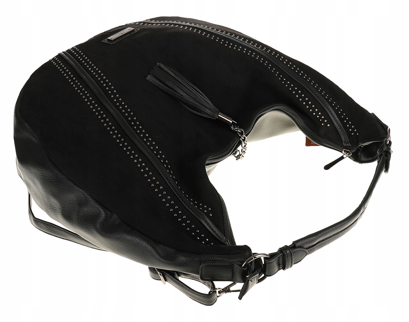 Torebka jednokomorowa, po jednej stronie dwie kieszonki zapinane na suwak dają dodatkowo kieszeń otwartą, po drugiej stronie znajdują się dwie kieszonki otwarte na drobiazgi. Na zewnątrz torebka posiada kieszeń zapinaną na suwak.