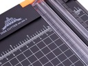Gilotyna do papieru pozwala w łatwy oraz szybki sposób przyciąć zdjęcia, wizytówki, i różnego typu dokumenty do odpowiednich rozmiarów. Przyrząd do cięcia papieru obsługuje szeroki zakres formatów, maksymalnie do formatu A3. Gilotyna wyposażona jest w miarkę centymetrową oraz calową, oraz siatkę, dzięki czemu można dokładnie ustawić papier przed wykonaniem cięcia. Ponadto produkt posiada oznaczenie kątowe, które umożliwia przycinanie papieru pod kątem od 45° do 90°. Produkt posiada precyzyjne ostrza, które mogą jednorazowo przyciąć do 12 kartek papieru. Cięcie papieru odbywa się w całkowcie bezpieczny sposób. Ostrze schowane są w prowadnicy, którą opuszcza się dopiero po ustawieniu papieru we właściwej pozycji.