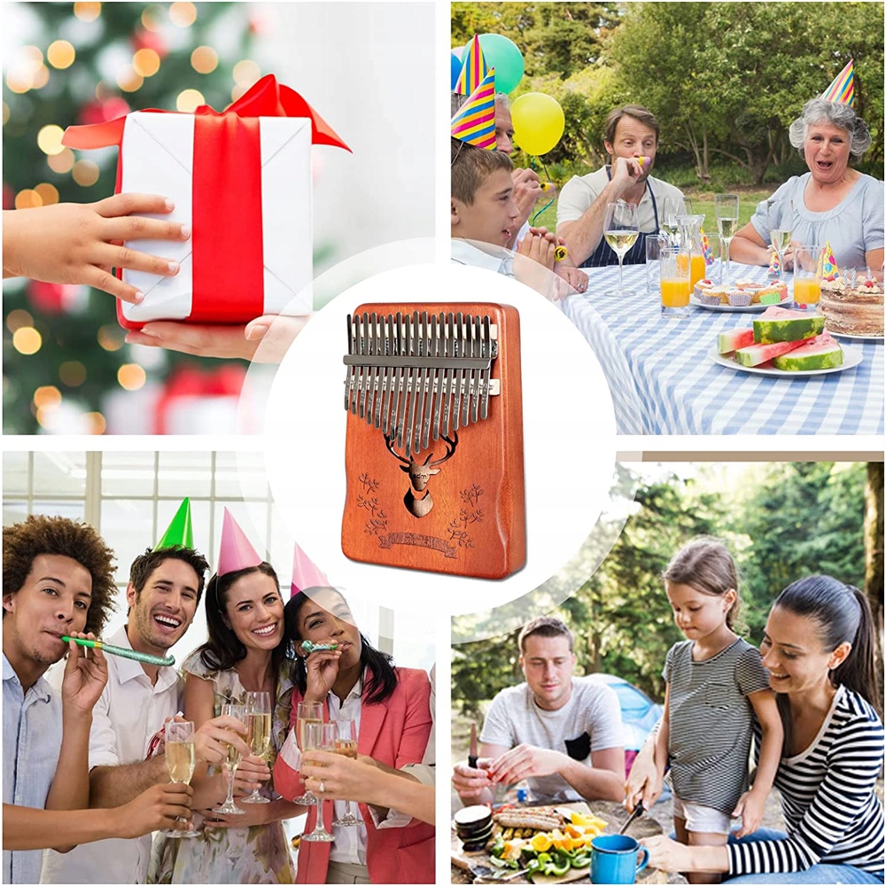 2, Przyjemny dźwięk i idealny pomysł na prezent: Piękny i spokojny dźwięk przyniesie ci bardzo szczęśliwe uczucie. Jest to doskonały wybór do relaksu, takiego jak zmniejszenie presji po pracy, rozrywka podczas weekendu lub wakacji, montaż z innymi instrumentami na imprezie itp. Nie martw się o wybór prezentu, bez wahania kup pianino kciukowe jako prezent dla miłośników muzyki, graczy na pianinie, gitarze i ukulele.