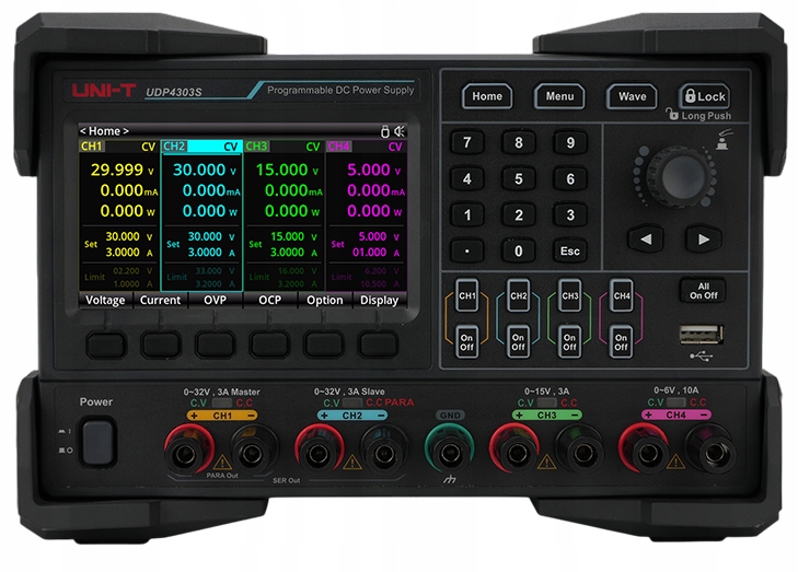 Zasilacz programowalny liniowy UDP4303S marki Uni-T to zaawansowane urządzenie z czterema izolowanymi kanałami, idealny do zastosowań laboratoryjnych i warsztatowych. Posiada dwa wyjścia 32 V/3 A, jedno wyjście 15 V/3 A oraz jedno wyjście 6 V/10 A, zapewniając dużą elastyczność w dostosowywaniu parametrów zasilania do różnych potrzeb. Maksymalna moc urządzenia wynosi 297 W, a możliwość regulacji napięcia i prądu z wysoką rozdzielczością (1 mV dla napięcia, 1 μA dla prądu) pozwala na precyzyjne ustawienie parametrów wyjściowych.