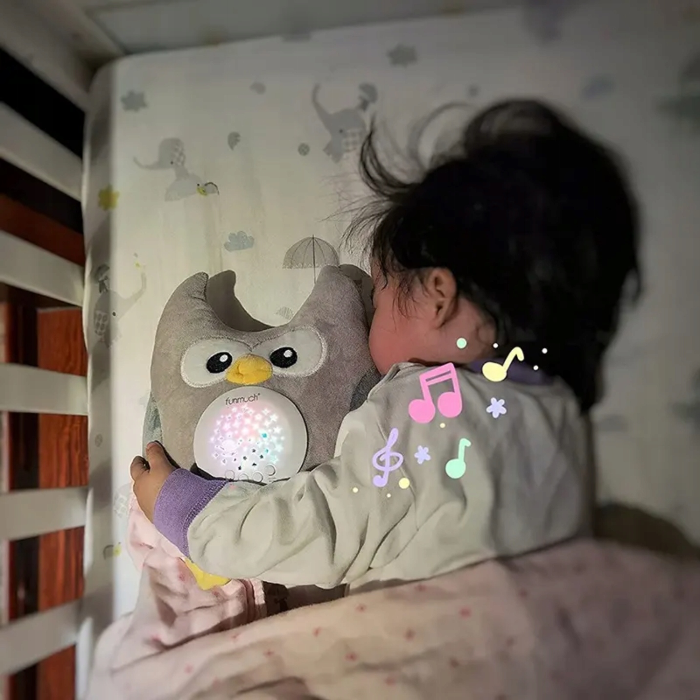Dzięki projektorowi gwiazd, lampce nocnej oraz melodii, sowa tworzy relaksującą atmosferę, pomagając dziecku zasnąć szybciej i spać dłużej. Delikatne światło gwiazd uspokaja i rozwija wyobraźnię malucha, jednocześnie eliminując strach przed ciemnością.