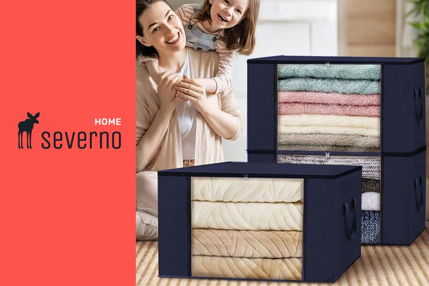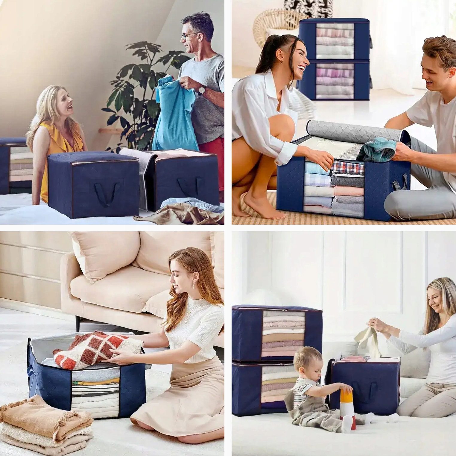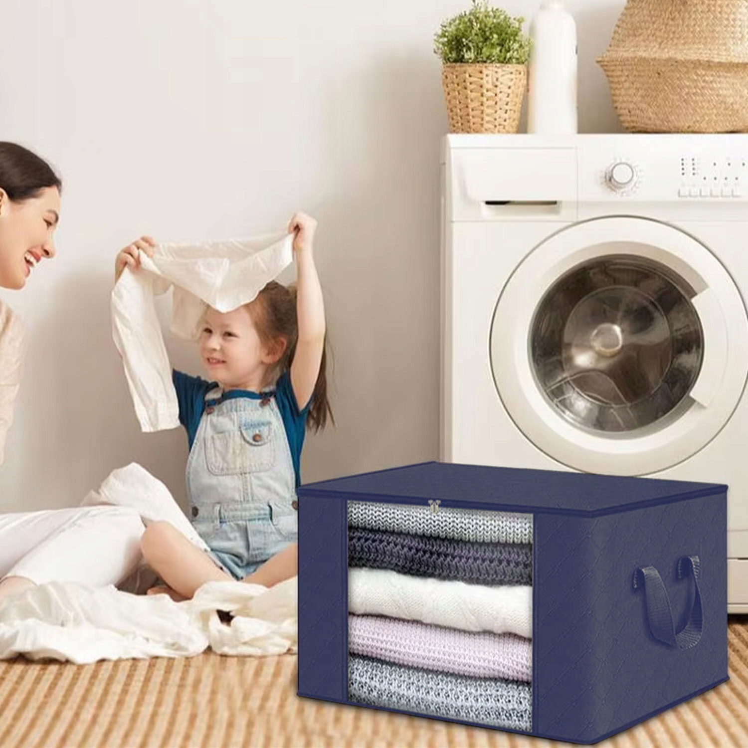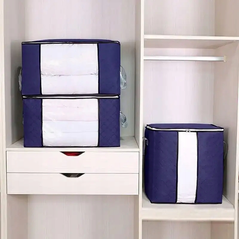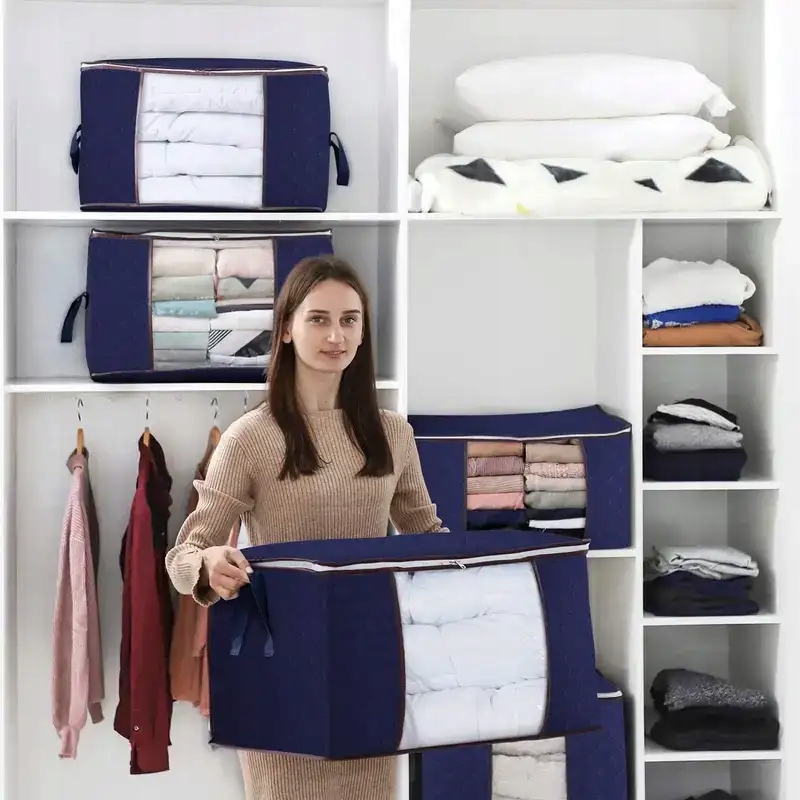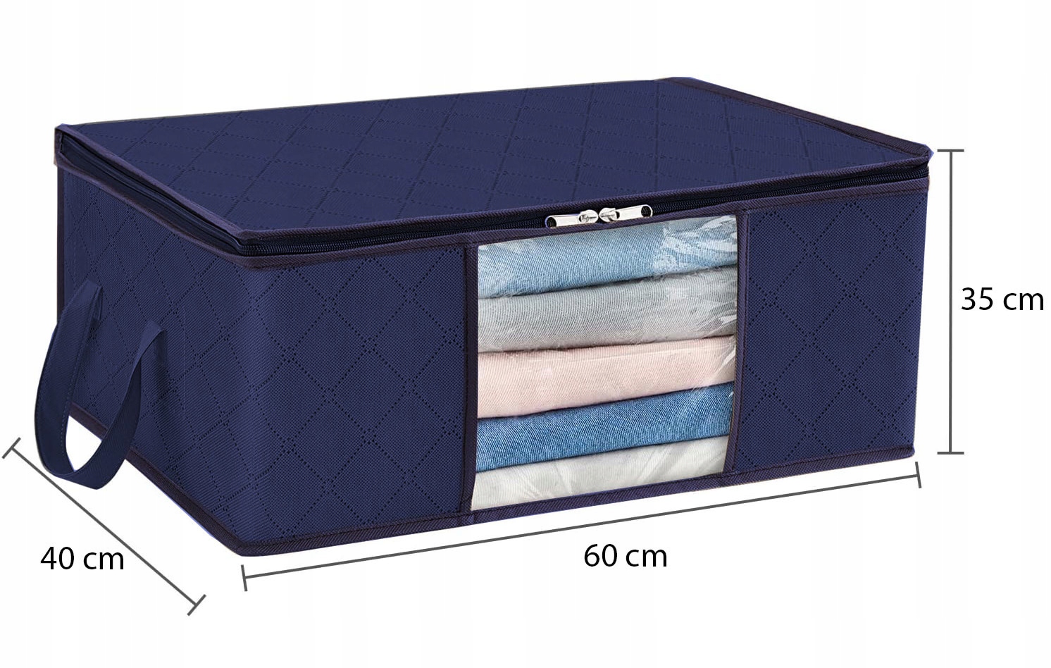 Każdy organizer o pojemności 84 litrów pomieści nawet duże kołdry, poduszki czy ubrania sezonowe. Dzięki kompaktowym wymiarom można go łatwo zmieścić w szafie, garderobie lub pod łóżkiem. Przezroczyste okienko umożliwia szybkie sprawdzenie zawartości, a solidne uchwyty pozwalają na wygodne przenoszenie.