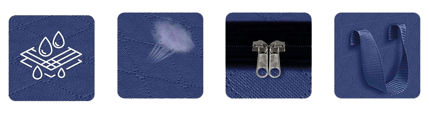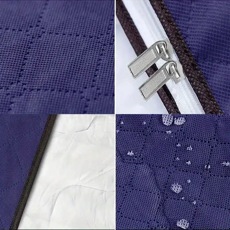 Wysokiej jakości materiał skutecznie chroni przed kurzem, wilgocią i zabrudzeniami, dzięki czemu przechowywane rzeczy zachowują świeżość. Idealne rozwiązanie dla ubrań zimowych, kołder, ręczników i innych tekstyliów domowych.