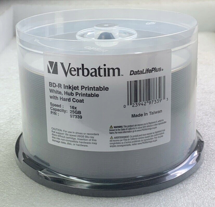Verbatim BD-R 25GB x6 Printable DataLife+Plus 10szt HTL / do nadruku w atramentowych drukarkach 22mm-118mm. Specjalna wzmocniona warstwa ochronna HardCoat =trzywarstwowa bardzo odporna na uszkodzenia mechaniczne . Nośnik polecany do archiwizacji i częstego użytkowania / odtwarzania .