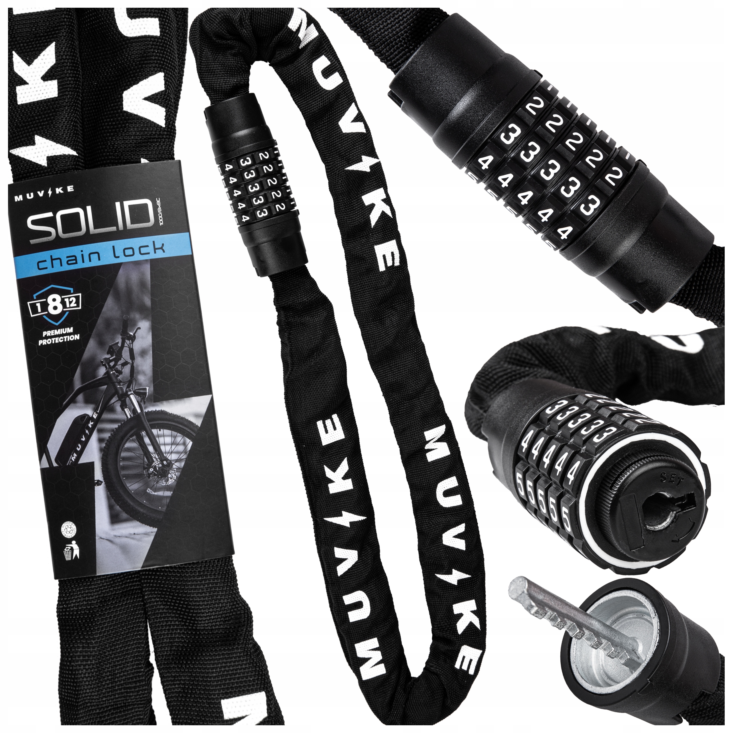 Zapięcie do roweru łańcuch Muvike Solid 1000/8x8C to bardzo solidny łańcuch, który skutecznie chroni przed kradzieżą. Dzięki optymalnej długości łatwo przypniesz rower do różnych obiektów, a zamek na kod zapewnia szybkie i wygodne użycie.