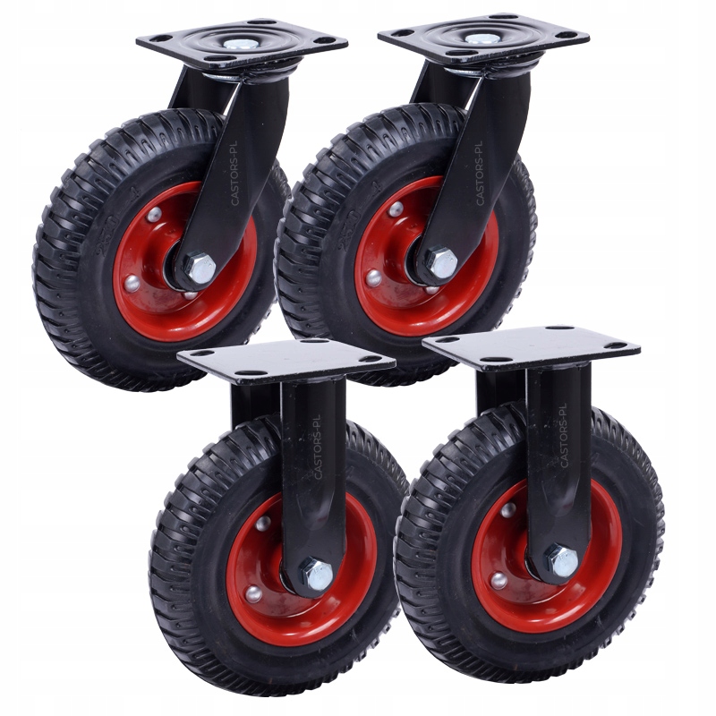 Zamów zestaw 2 kół stałych i 2 obrotowych, aby zapewnić mobilność Twoim wózkom z najwyższą jakością i wytrzymałością!
