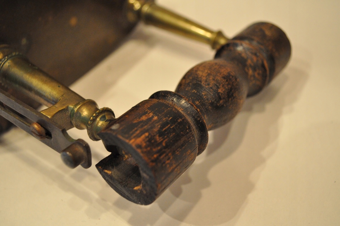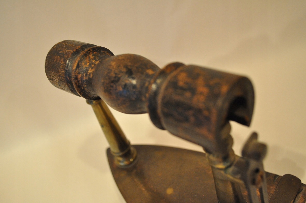 Drewniany uchwyt żelazka w bardzo dobrym stanie - bez jakichkolwiek istotnych uszkodzeń.