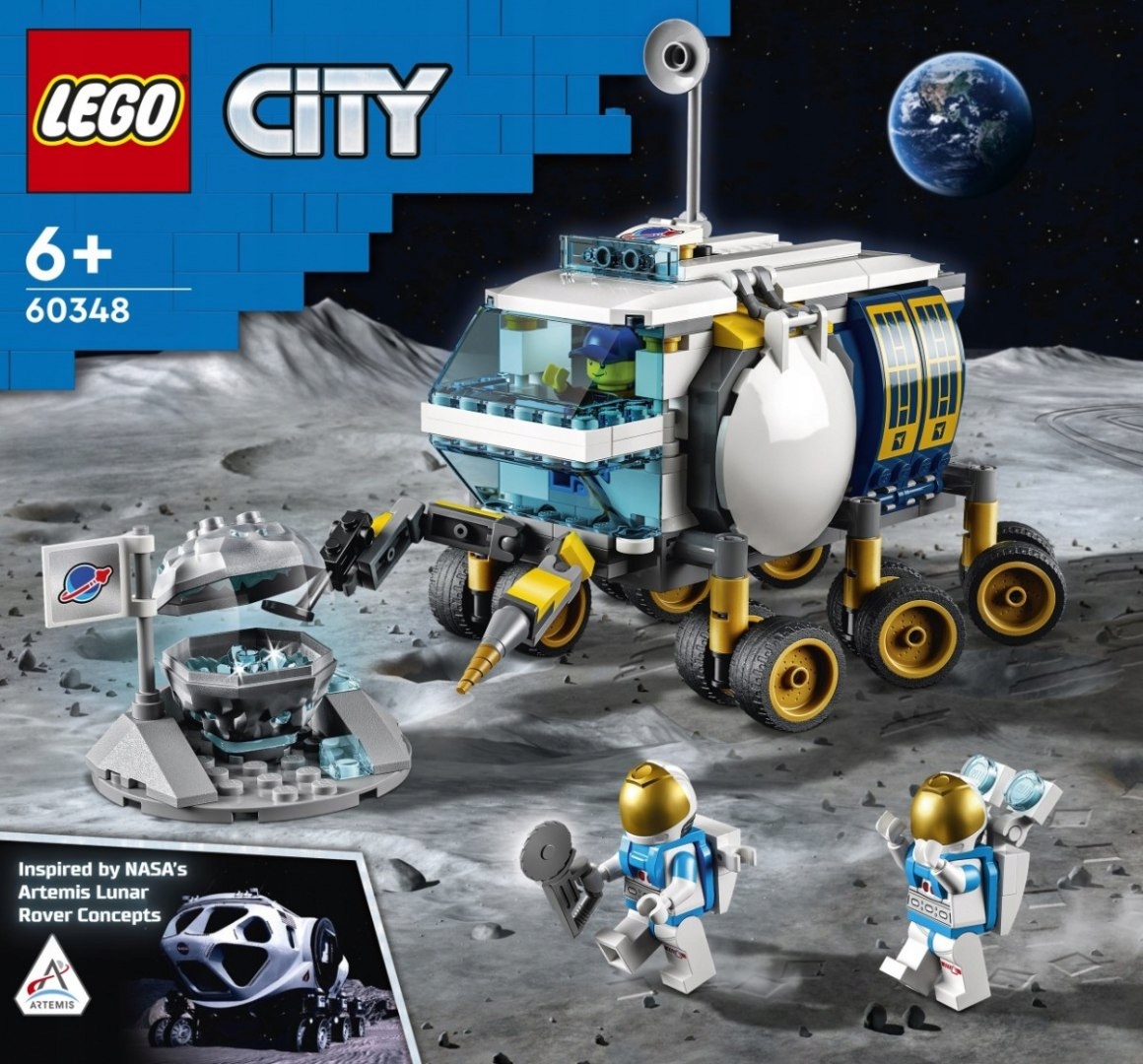 • Zabawka inspirowana pracą NASA dla sześciolatków i starszych dzieci — zestaw do budowania i zabawy LEGO® City Łazik księżycowy (60348) odkryje przed dziećmi nowe horyzonty kreatywności