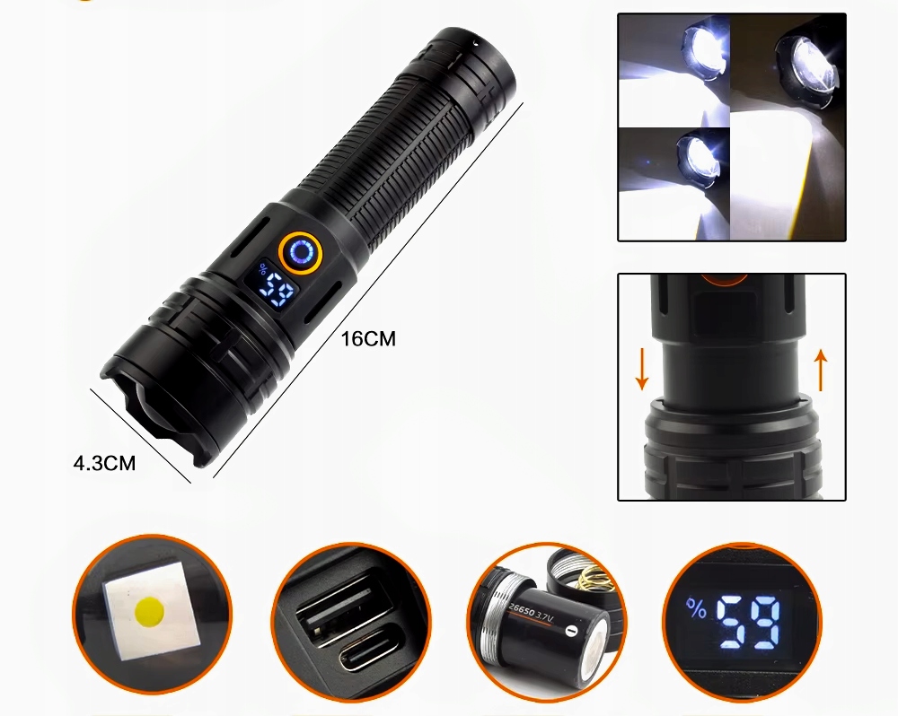 Код производителя 5000lm 1500m 26650 5000mAh USB-C DALEKOSIĘŻNA