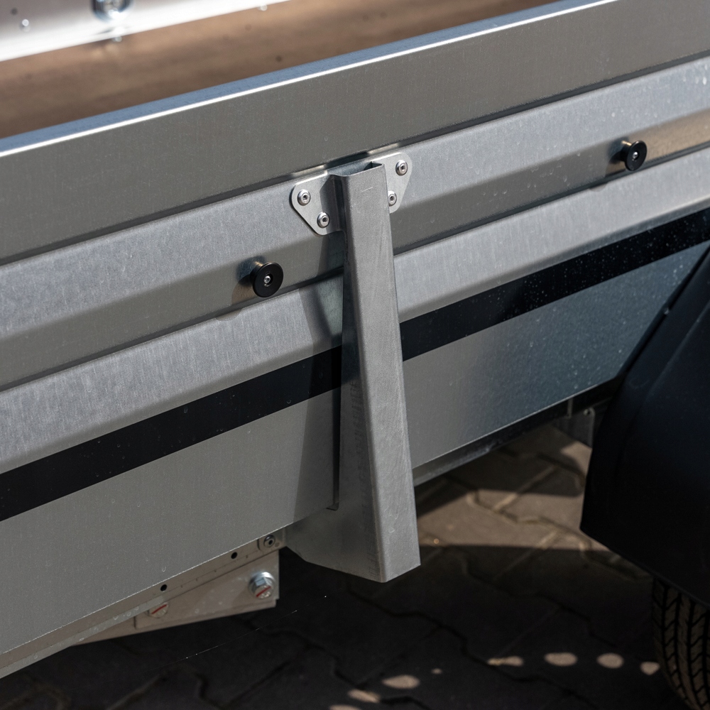 Solidne, podwyższone przyczepy o mocnej konstrukcji do codziennego użytku. Zwiększona ładowność, wszystkie aluminiowe burty otwierane, co zwiększa możliwości przyczepy w obszarze zastosowań - może służyć również jako laweta. Wyposażone w system łatwego mocowania ładunku oraz profesjonalne zamki. Dostępna szeroka gama akcesoriów.
