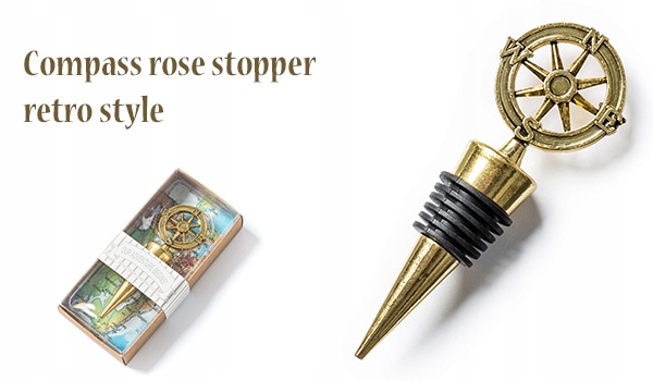 W serii dla podróżników, globtroterów i odkrywców, ale także dla zwykłych koneserów wina mamy piękną stylową zatyczkę od butelki z motywem róży wiatrów. Podobnie jak otwieracz aeroplan ma przywodzić na myśl tęsknotę za podróżami bliższymi i dalszymi, cudne wakacje spędzone w cudownych miejscach z rodziną i przyjaciółmi, planowane i zrealizowane wyprawy i weekendowe wypady. Każdy, kto lubi podróżować i odkrywać nowe miejsca, wie o czym mowa i z przyjemnością sięgnie po tą zgrabną zatyczkę. Pomysłowe pudełeczko z mapą świata jako tło dopełnia pozytywnego obrazu tego niewielkiego gadżetu budzącego tyle miłych wspomnień i pozytywnych emocji. Zatyczka można też leżeć na biurku, kredensie czy kominku jako ozdoba naszego wnętrza, bo jest po prostu ładna i stylowa :)