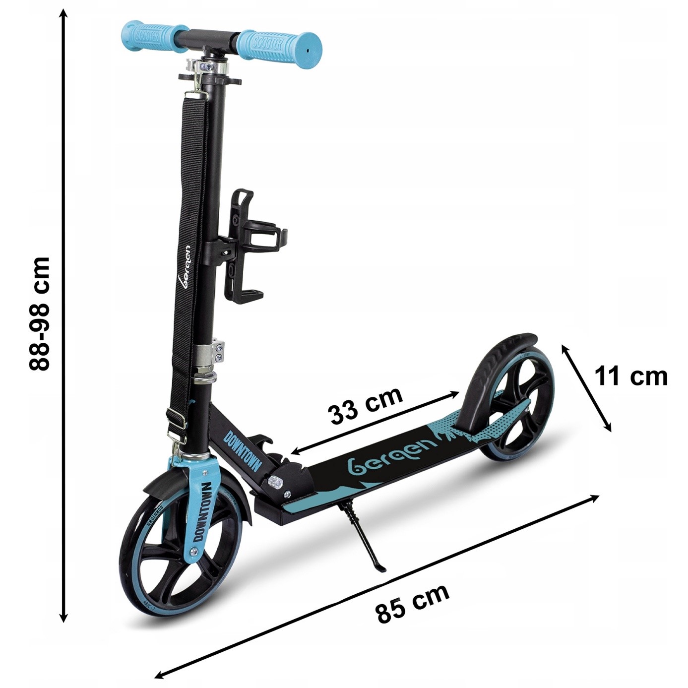 Hulajnoga Bergen Downtown Green wyróżnia się minimalistycznym designem z eleganckim połączeniem czerni i zieleni. W zestawie znajduje się dodatkowy deck z innym wzorem, co pozwala na łatwą zmianę wyglądu hulajnogi.
